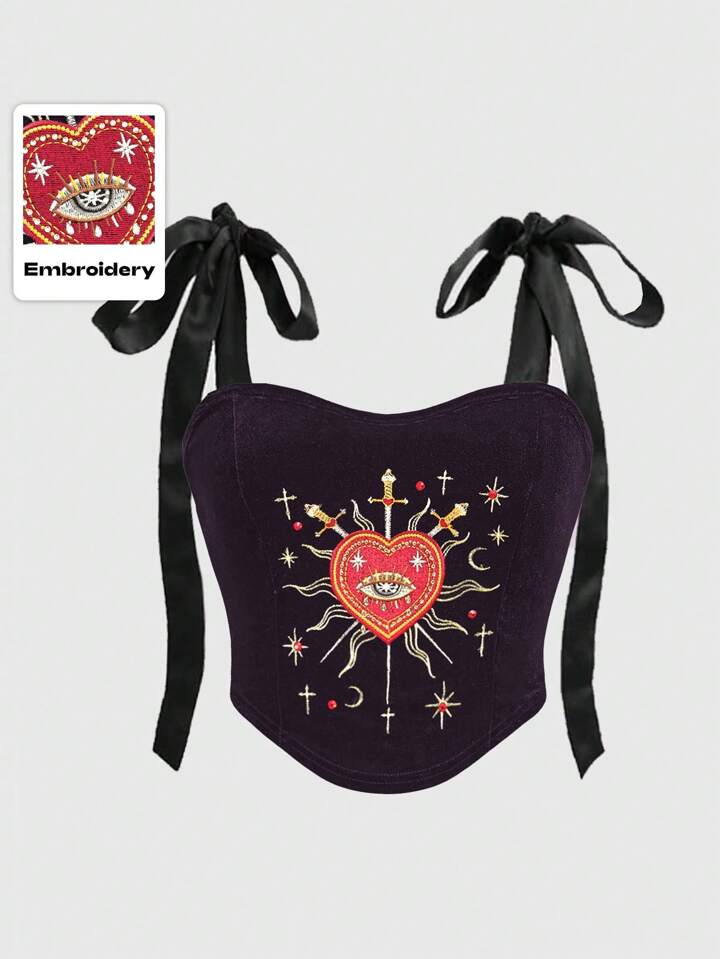 Débardeur carré décoré d'une broderie de larme de cristal et d'étoile, pour un style gothique romantique, pour femmes