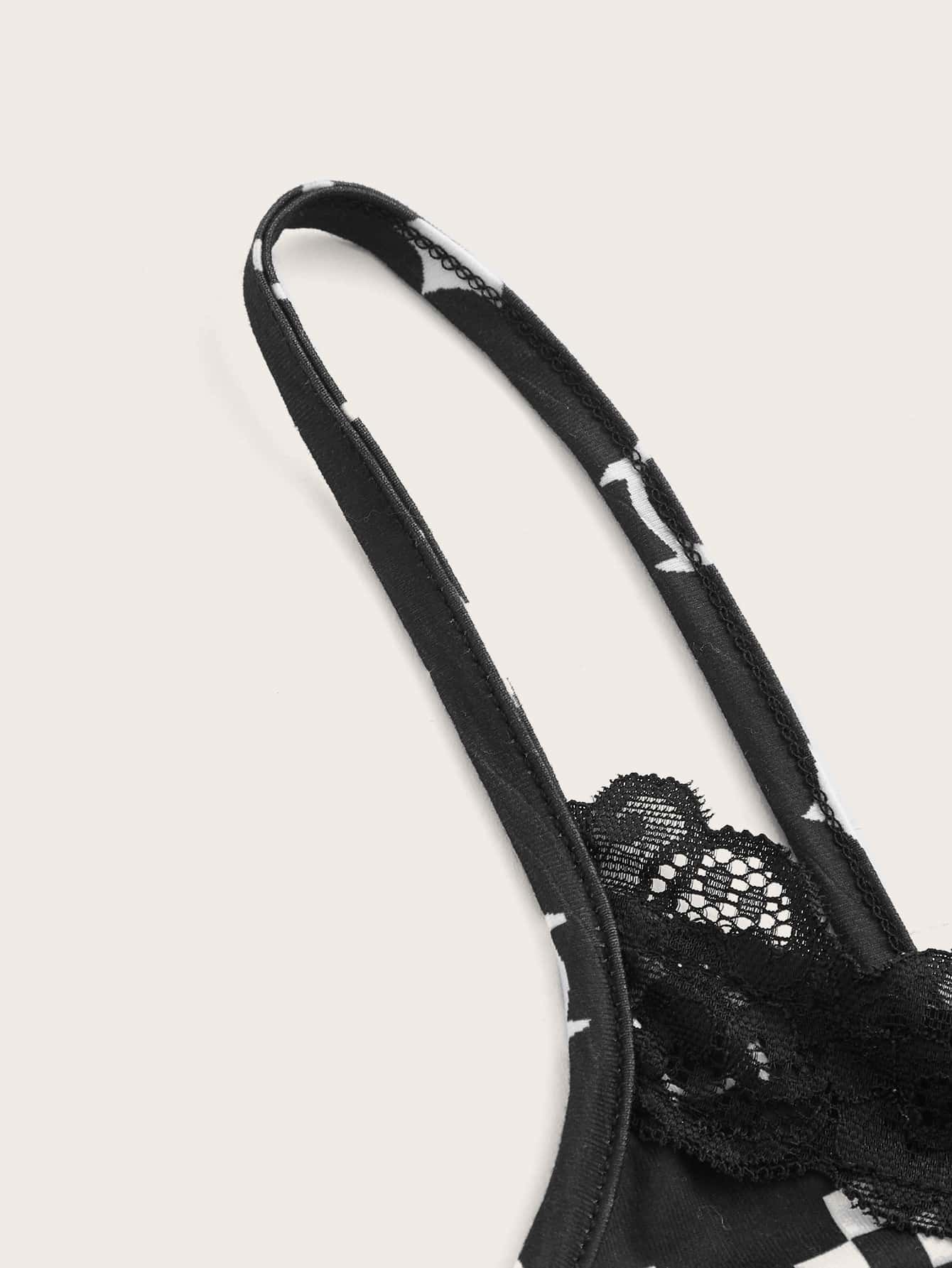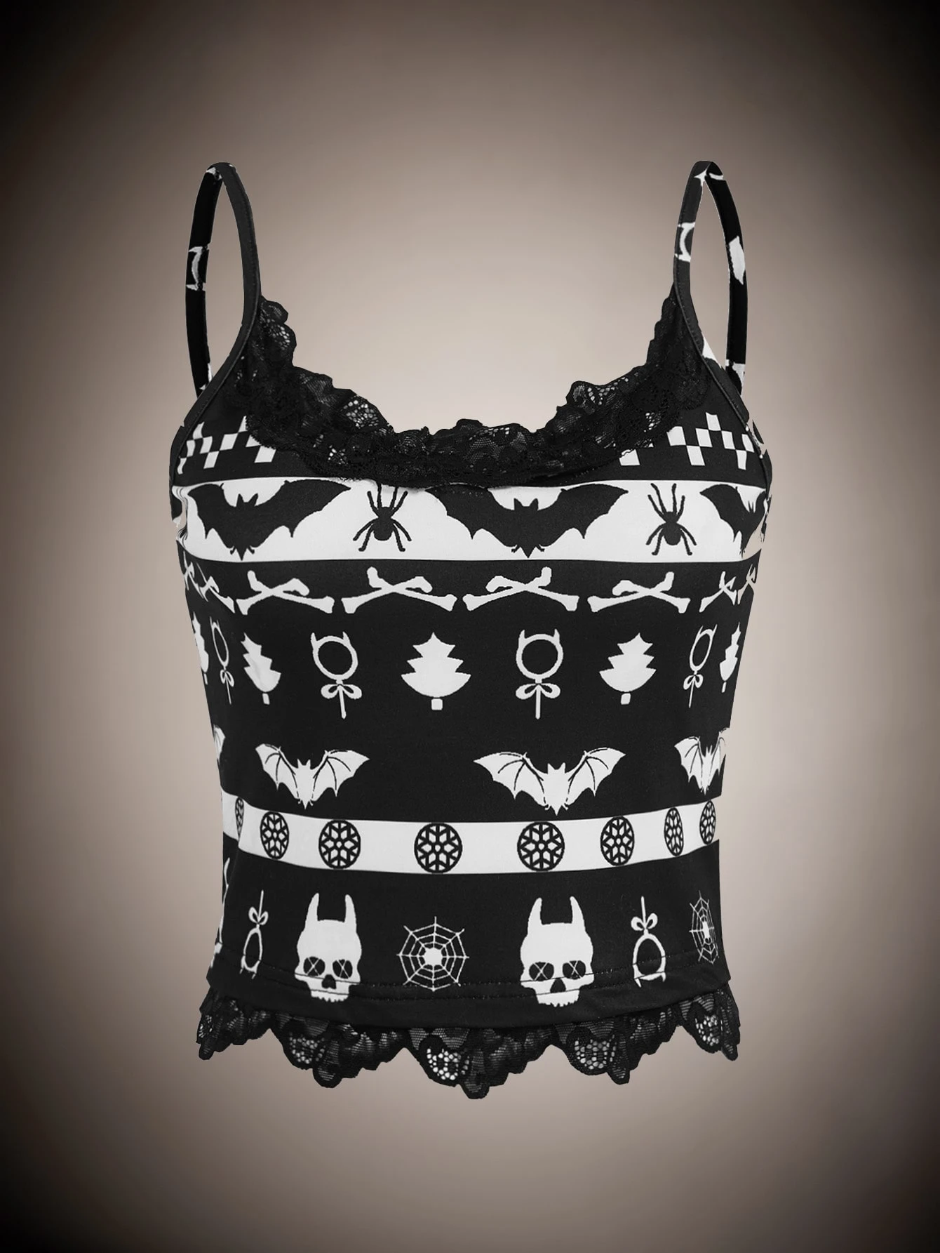 Goth Top à fines brides à imprimé tête de mort en dentelle