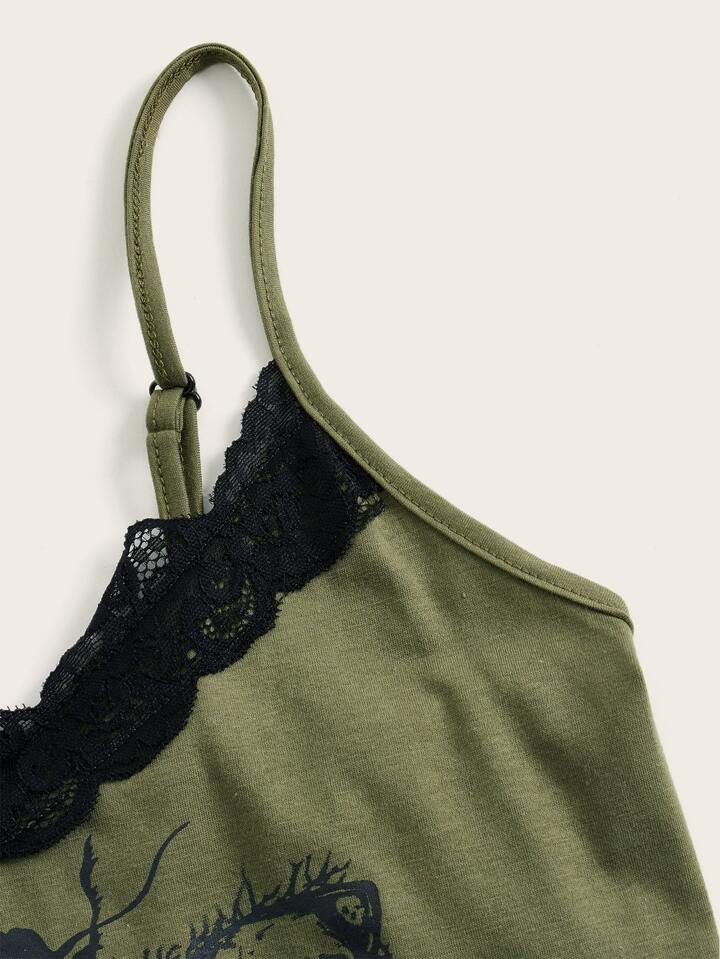 Goth Top À Fines Brides Imprimé Tête De Mort En Dentelle