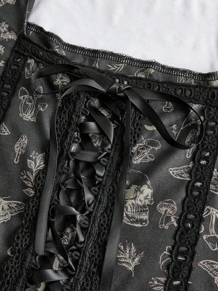 Goth T-shirt Imprimé Tête De Mort À Lacets Manches Bouffantes