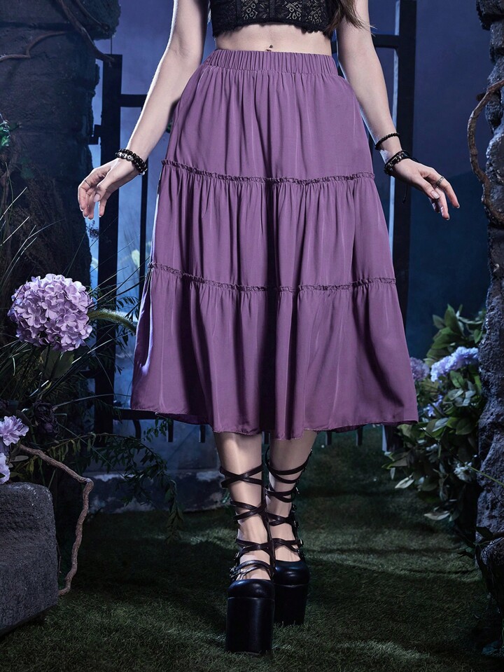 Goth Jupe Unicolore À Plis À Volants