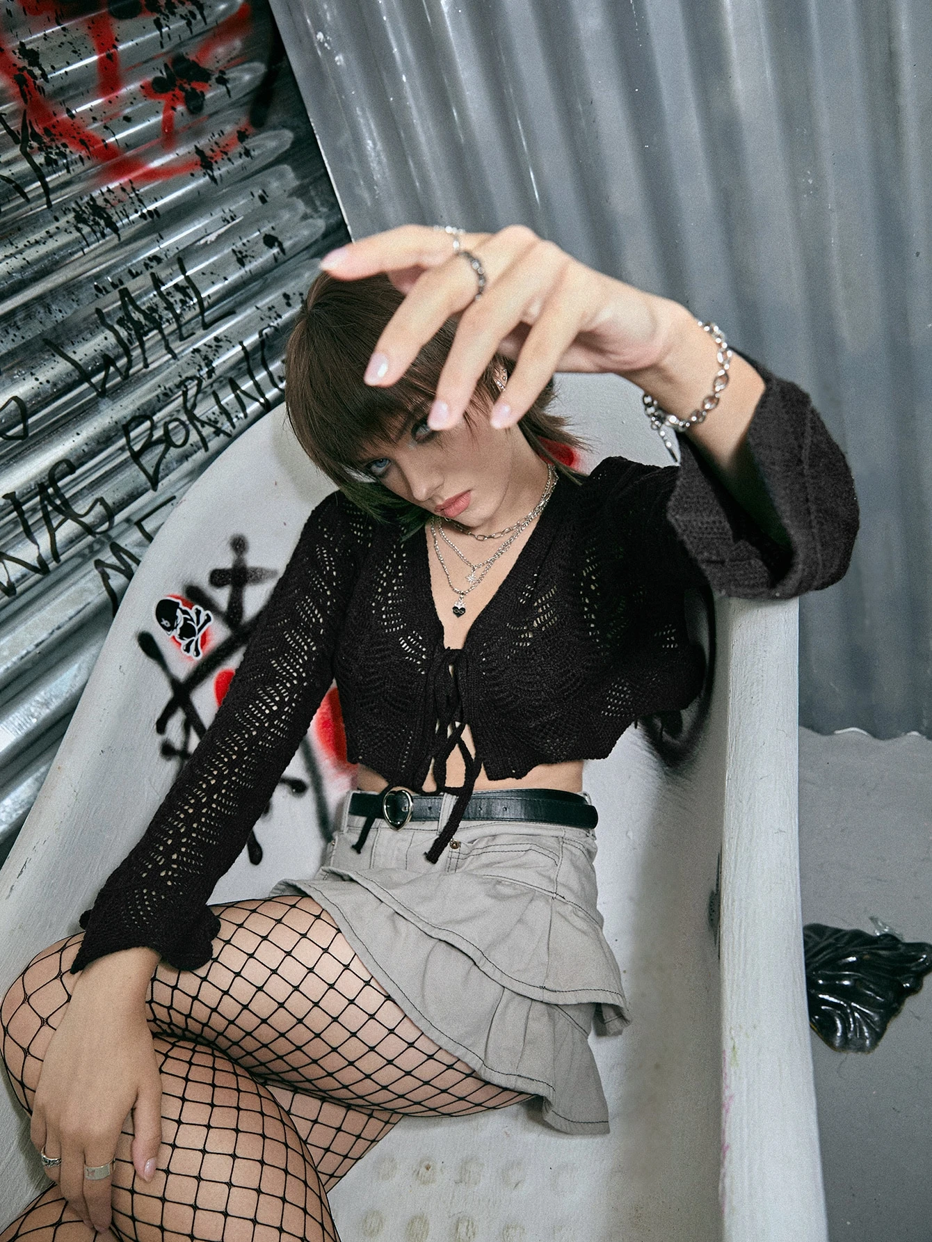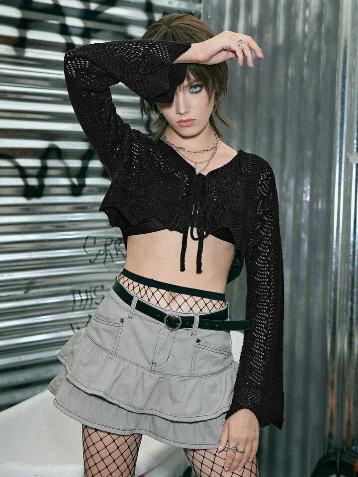 Goth Cardigan unicolore ajouré à nœud