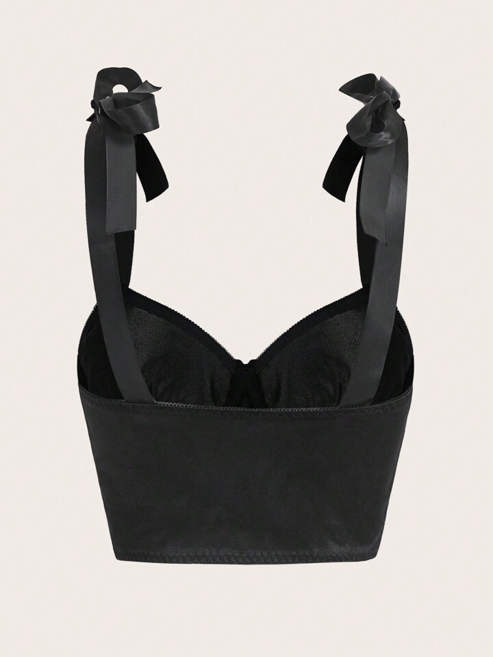 Goth Top À Fines Brides Unicolore À Épaule Nouée En Satin
