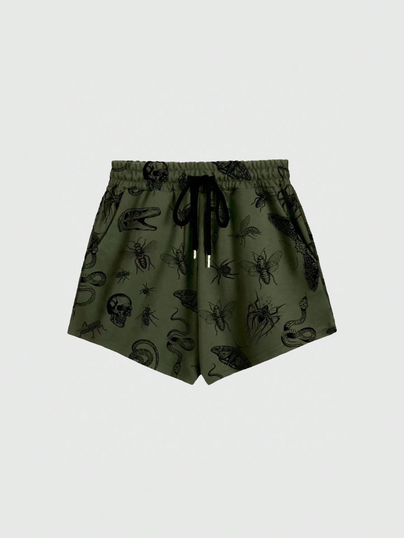 Goth Short décontracté à taille cordon de serrage avec imprimé plante et insecte, grande taille. Convient pour la maison et l'extérieur