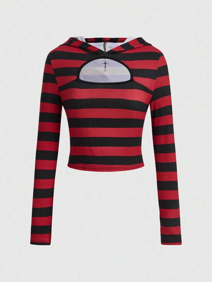 Goth Sweat-Shirt À Capuche À Rayures Découpé