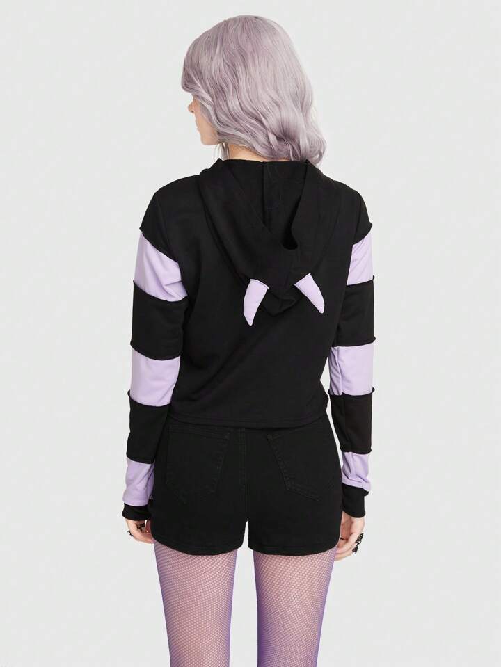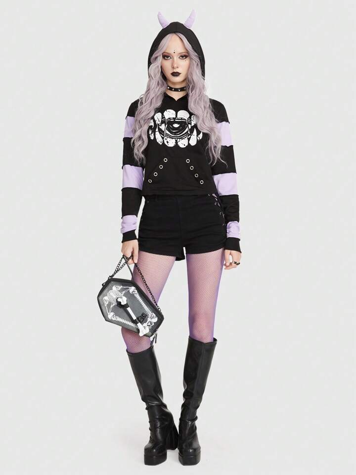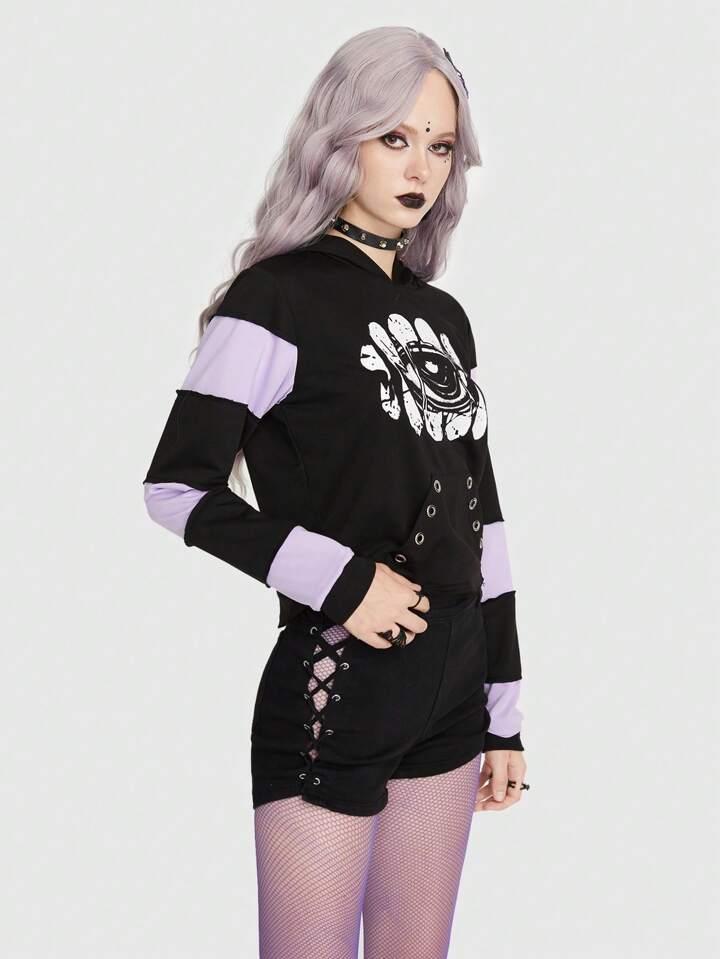 Goth Sweat-Shirt À Capuche À Rayures Œil Graphique Épaule tombante