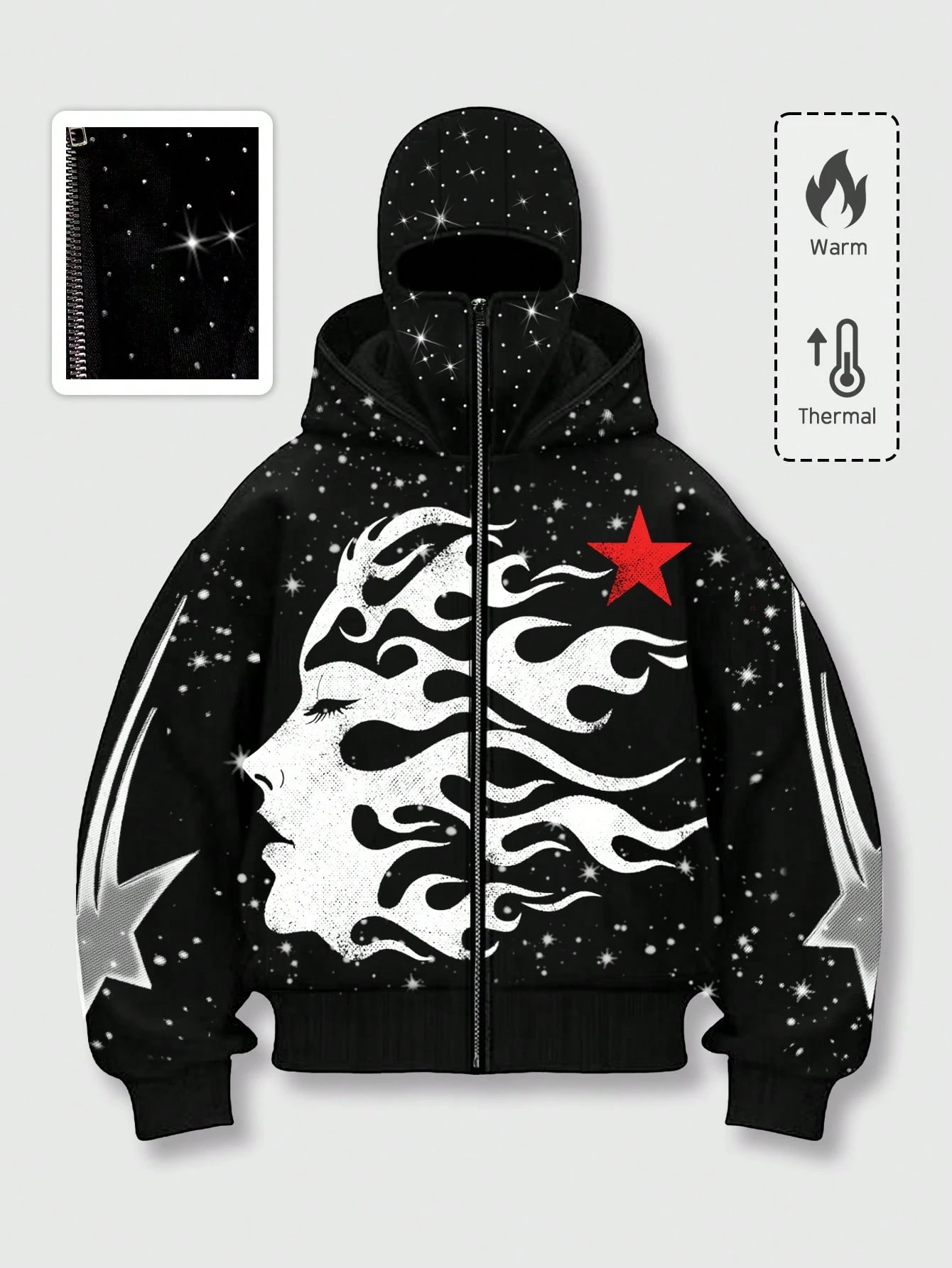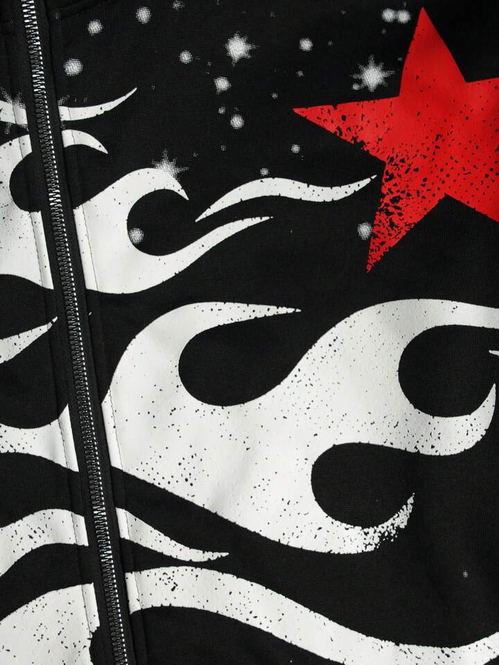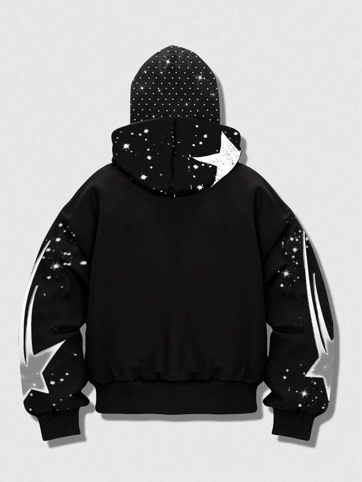Goth sweat-shirt zippé à capuche sombre et élégant avec ornements de strass pour hommes