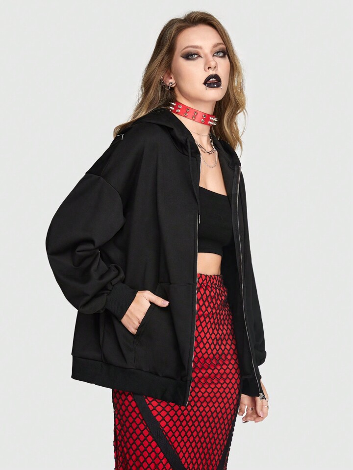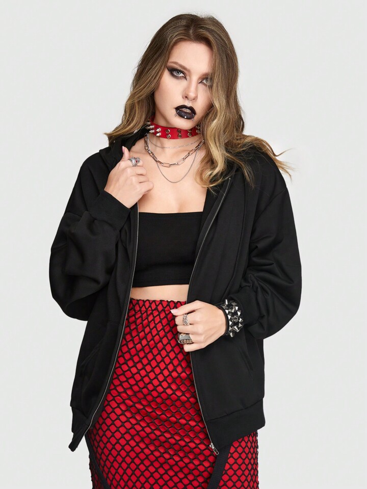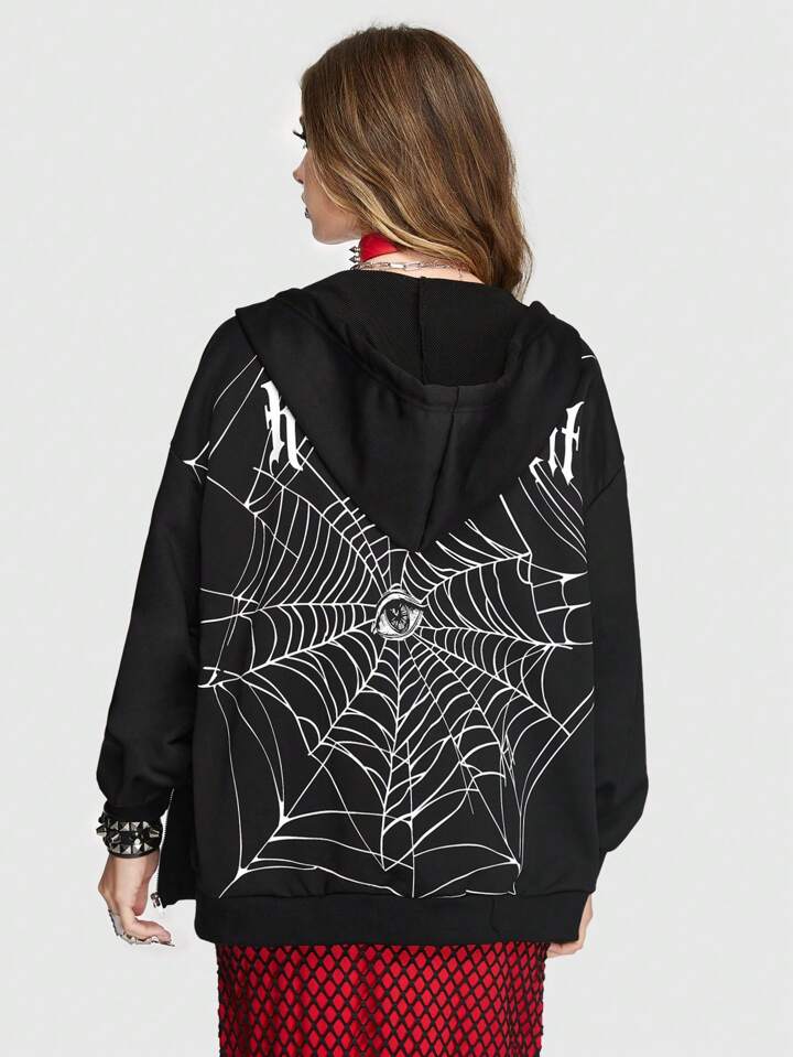 Goth Sweat Femme Style Rock À Grand Imprimé Toile D'araignée