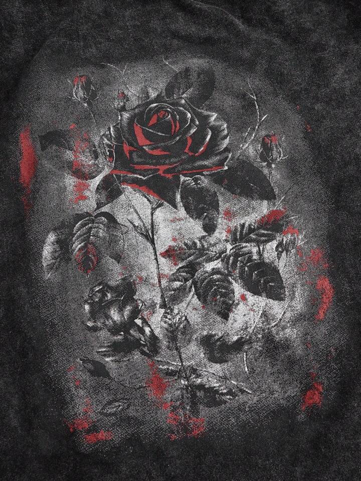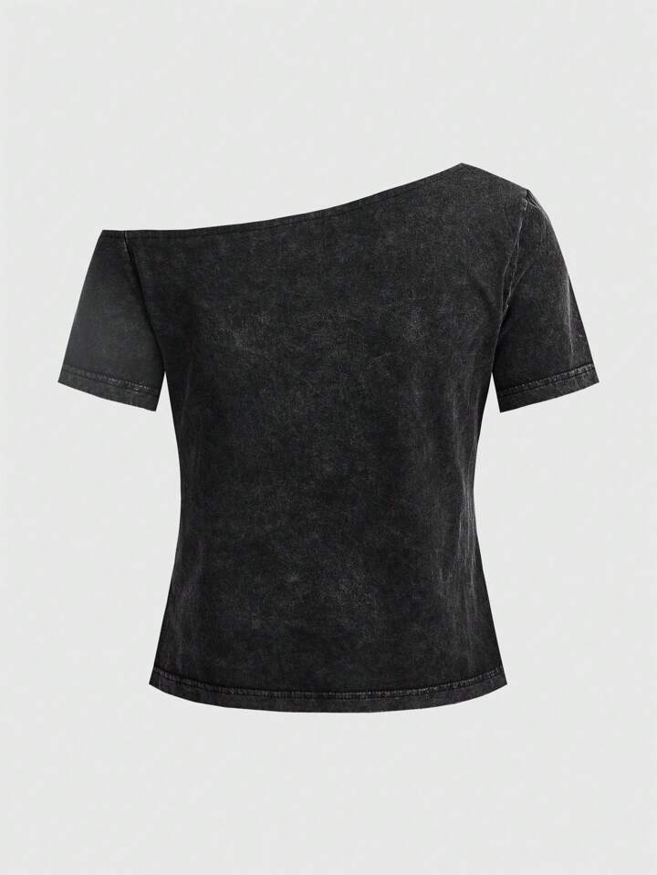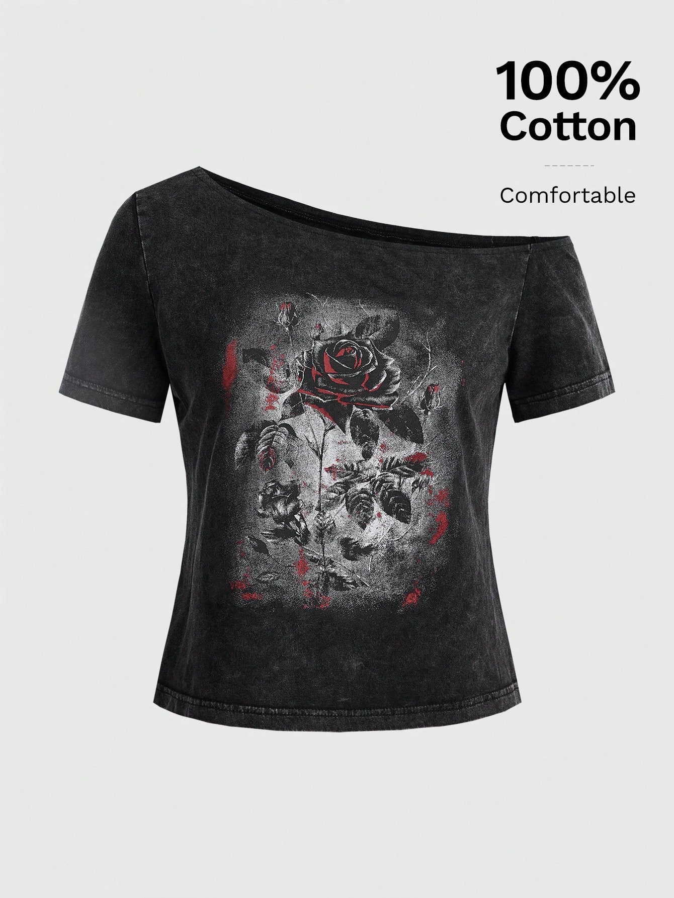Goth T-shirt à col asymétrique avec imprimé rose pour femme, école