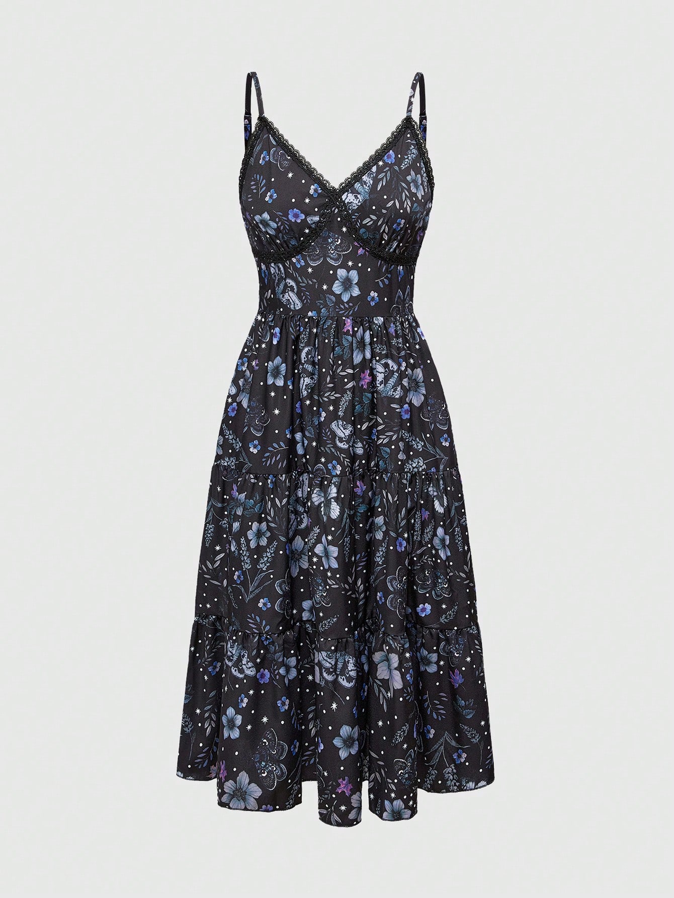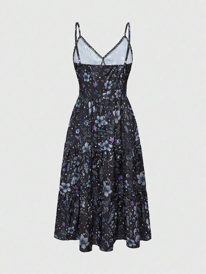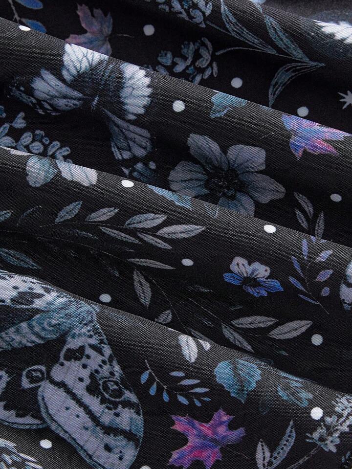Goth Robe à bretelles fines avec imprimé floral et papillon sur fond violet foncé pour femmes