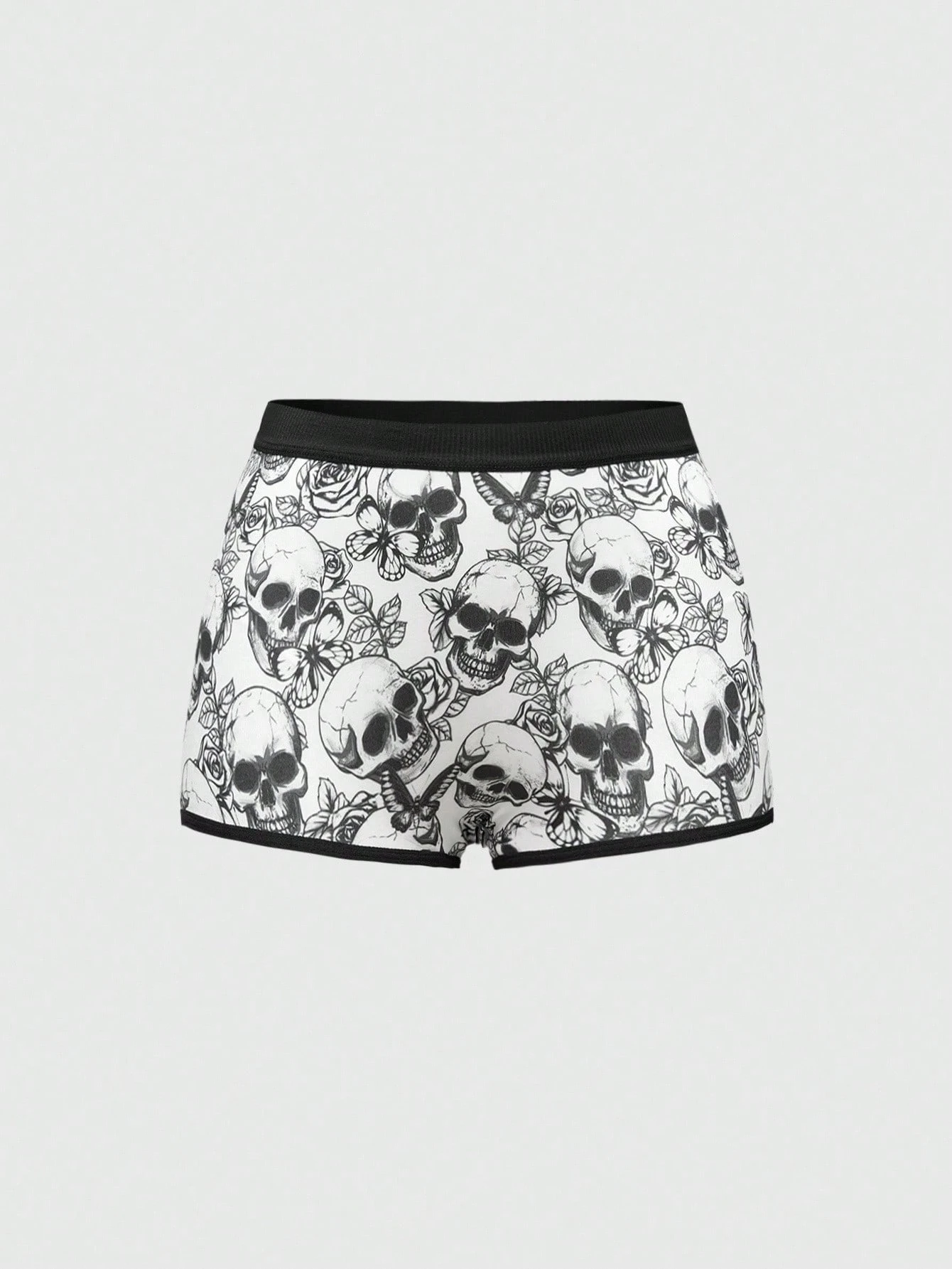 Culottes boyshort à taille élastique pour femmes avec imprimé gothique de crâne et de fleurs
