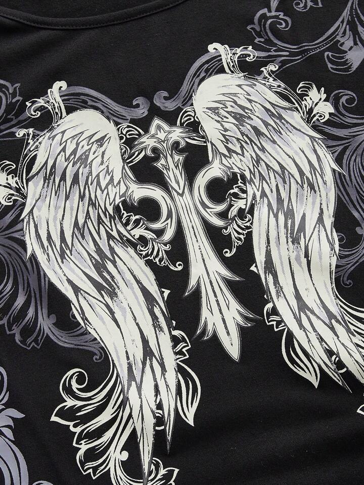 Goth T-shirt Ajusté Graphique À Ailes De Grande Taille Pour Femmes