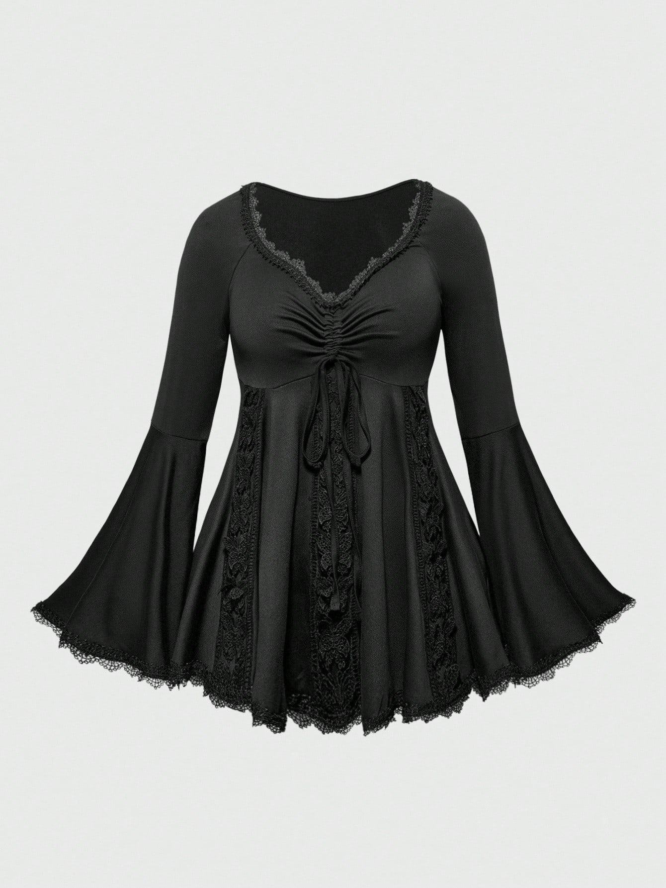 Goth Chemise à manches évasées avec dentelle vintage et découpes ajourées pour femmes, top style Renaissance pour Halloween