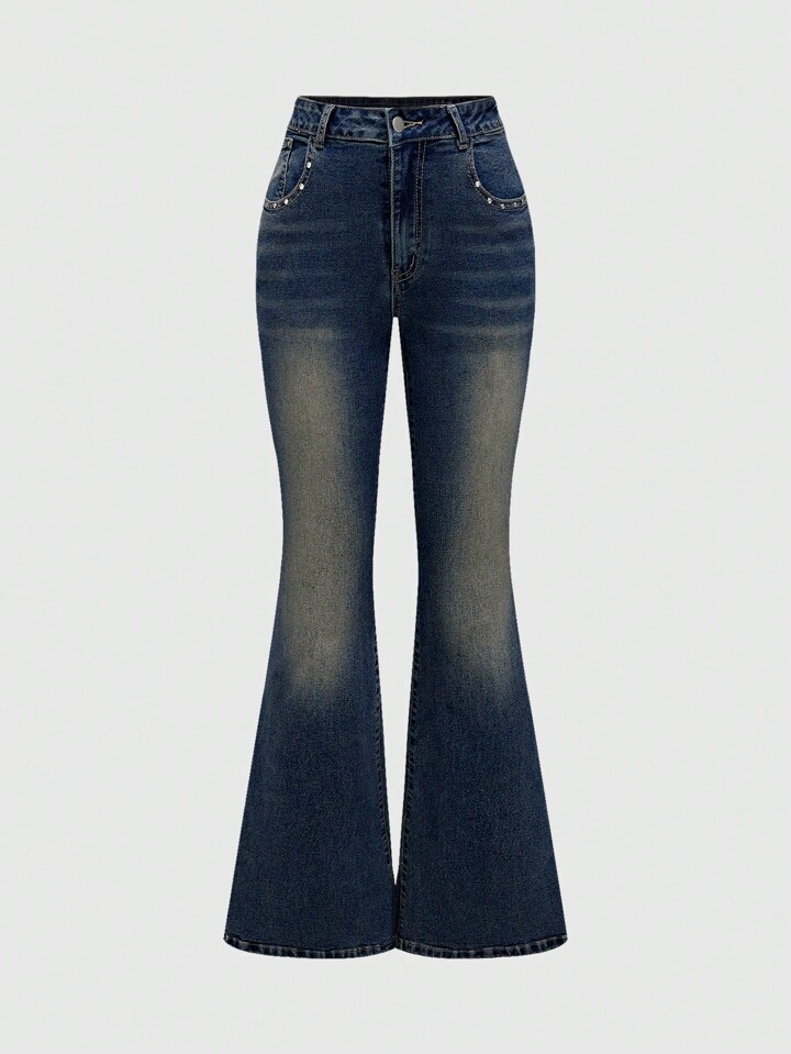 Goth Jeans évasés avec broderie de crâne au dos et strass, style Y2K, pour école