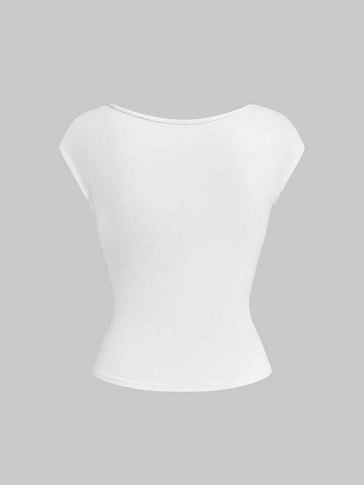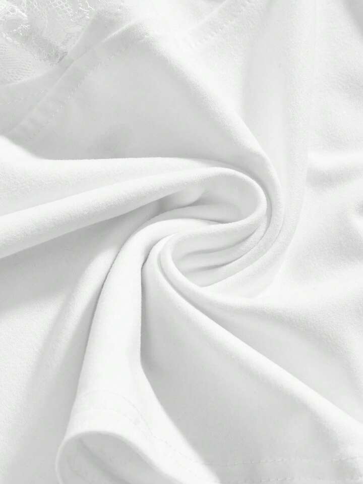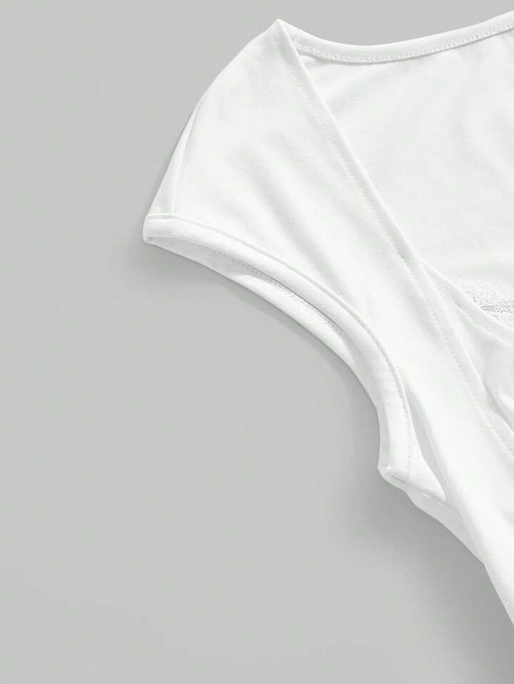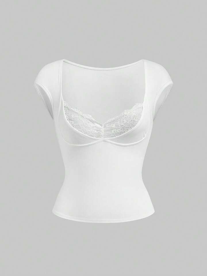 Goth T-shirt moulant et ajusté pour femmes avec taille froncée en dentelle contrastée, style polyvalent et sexy