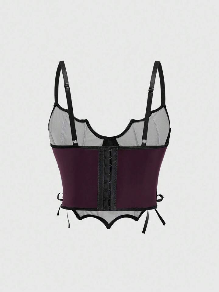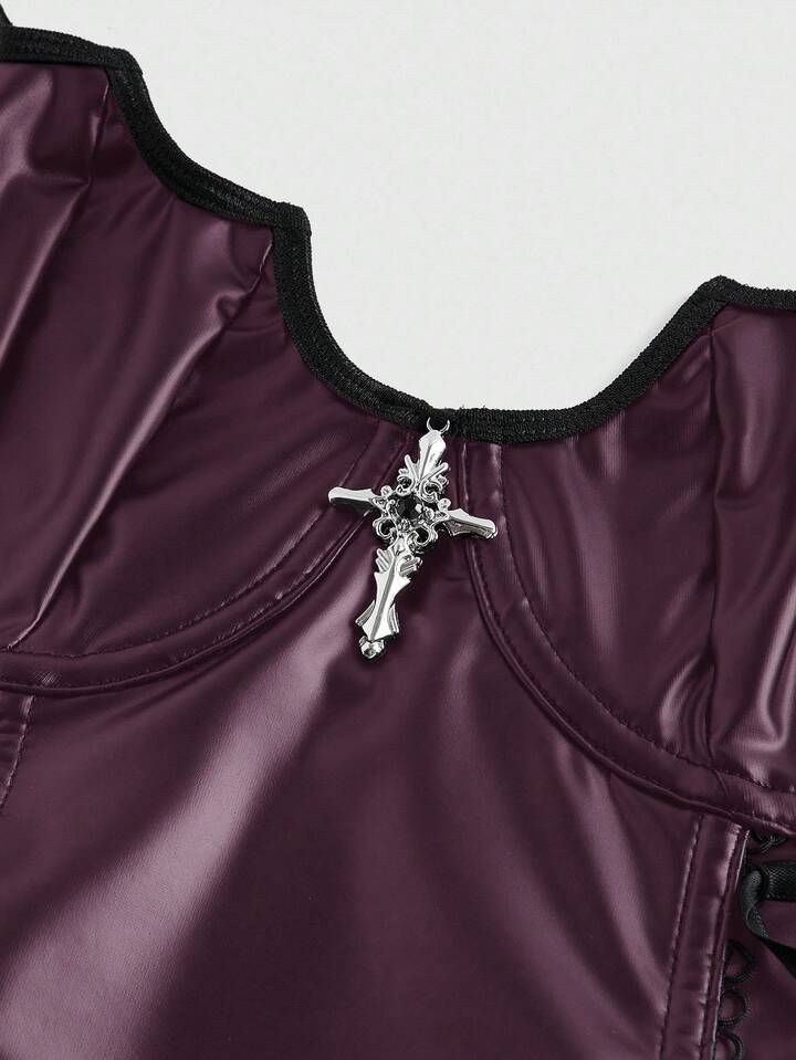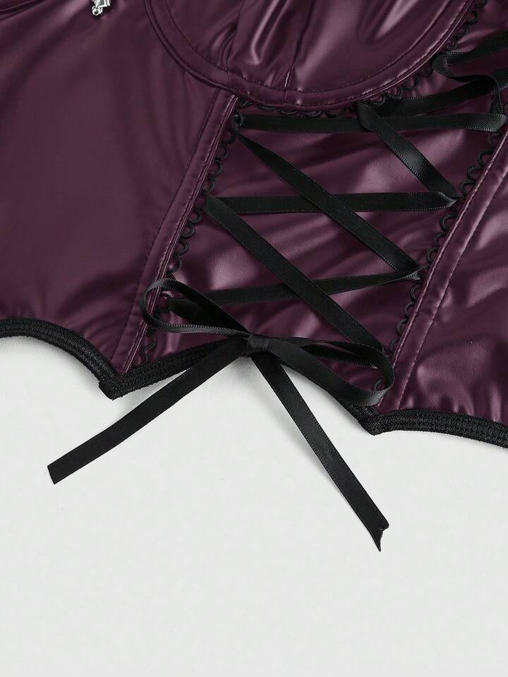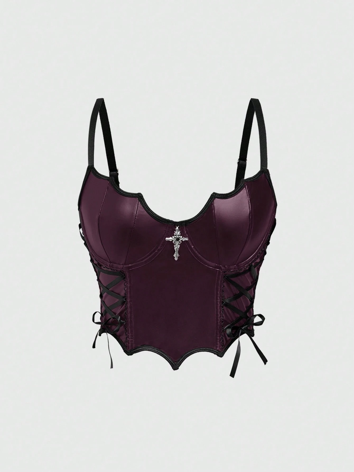 Débardeur à lacets devant avec design de chauve-souris gothique, bordeaux