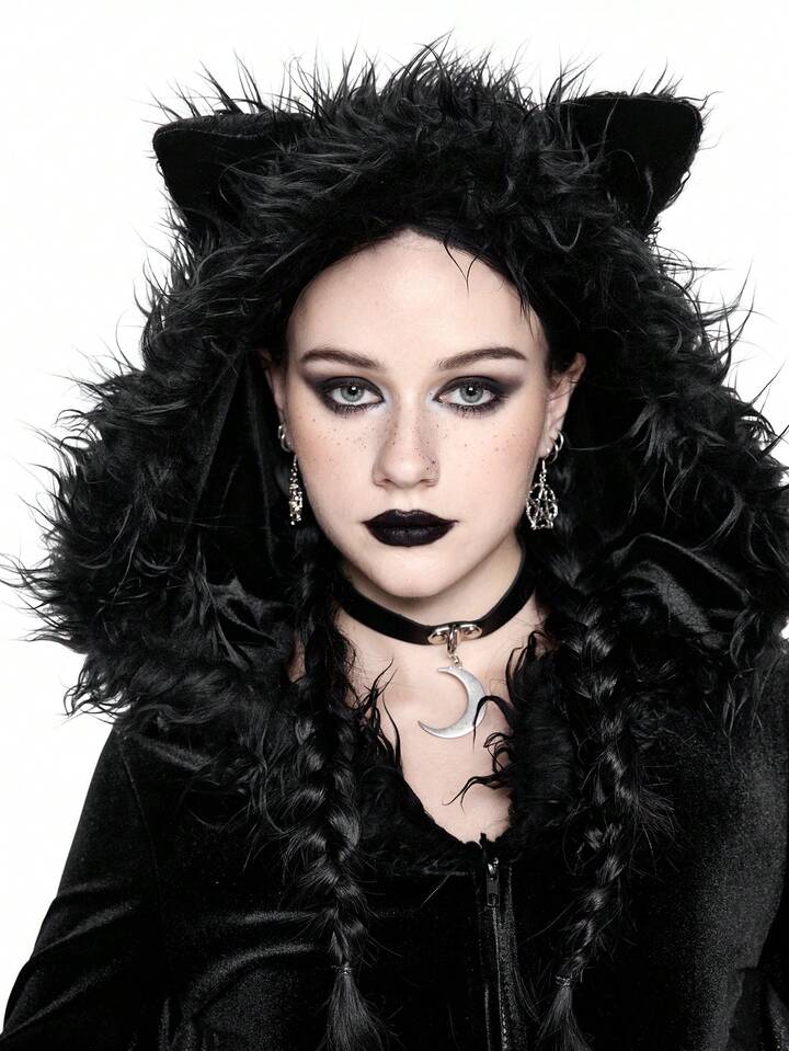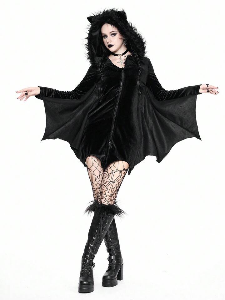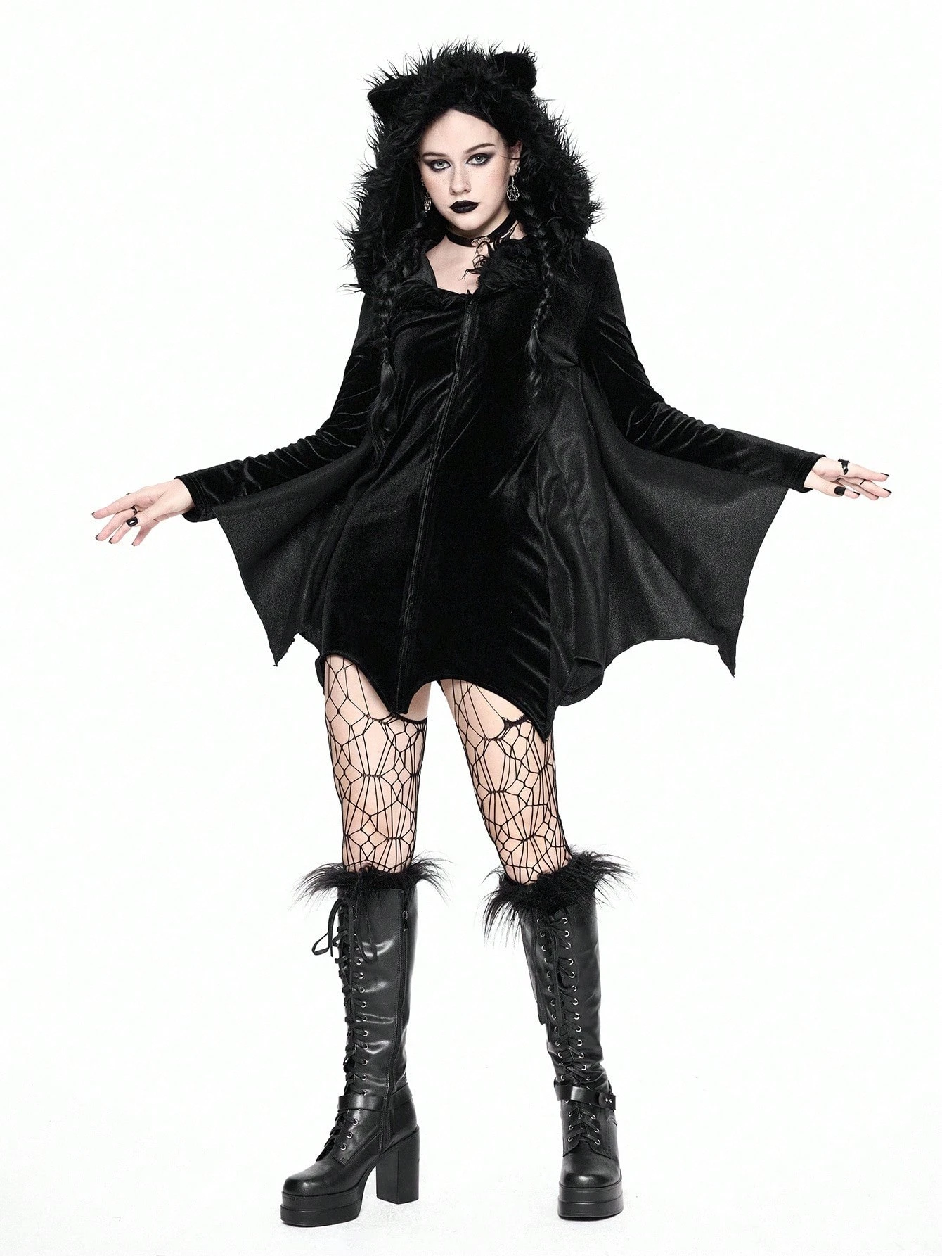 Robe moulante en velours avec ourlet en forme d'oreilles de chauve-souris gothique pour Halloween