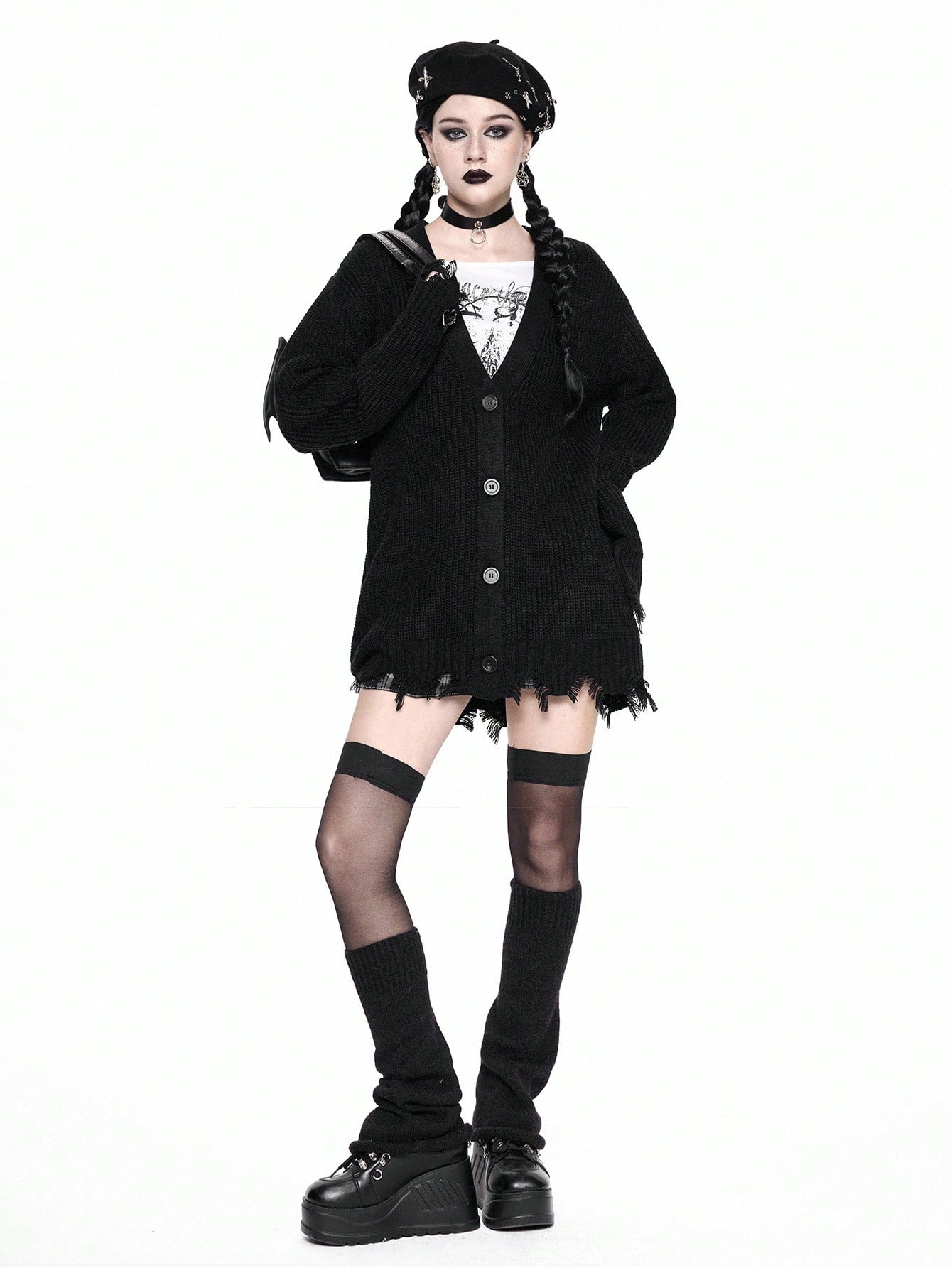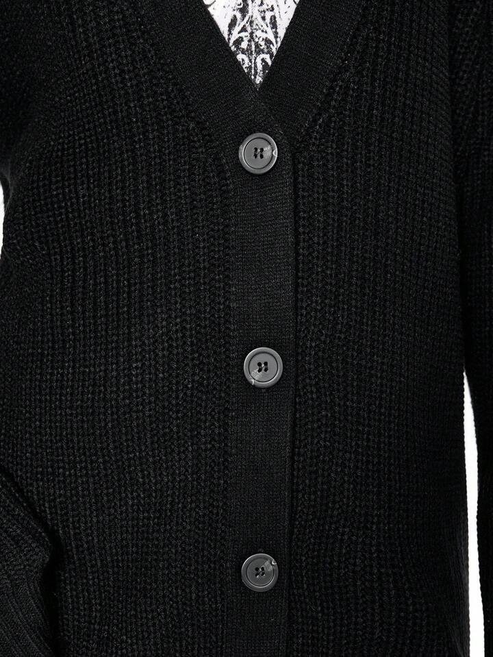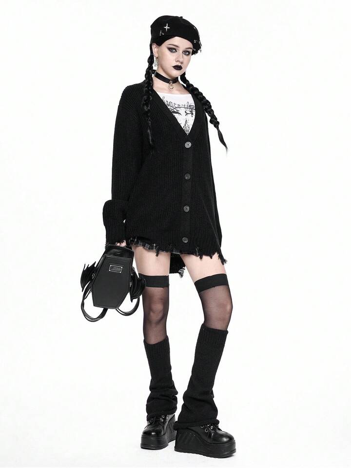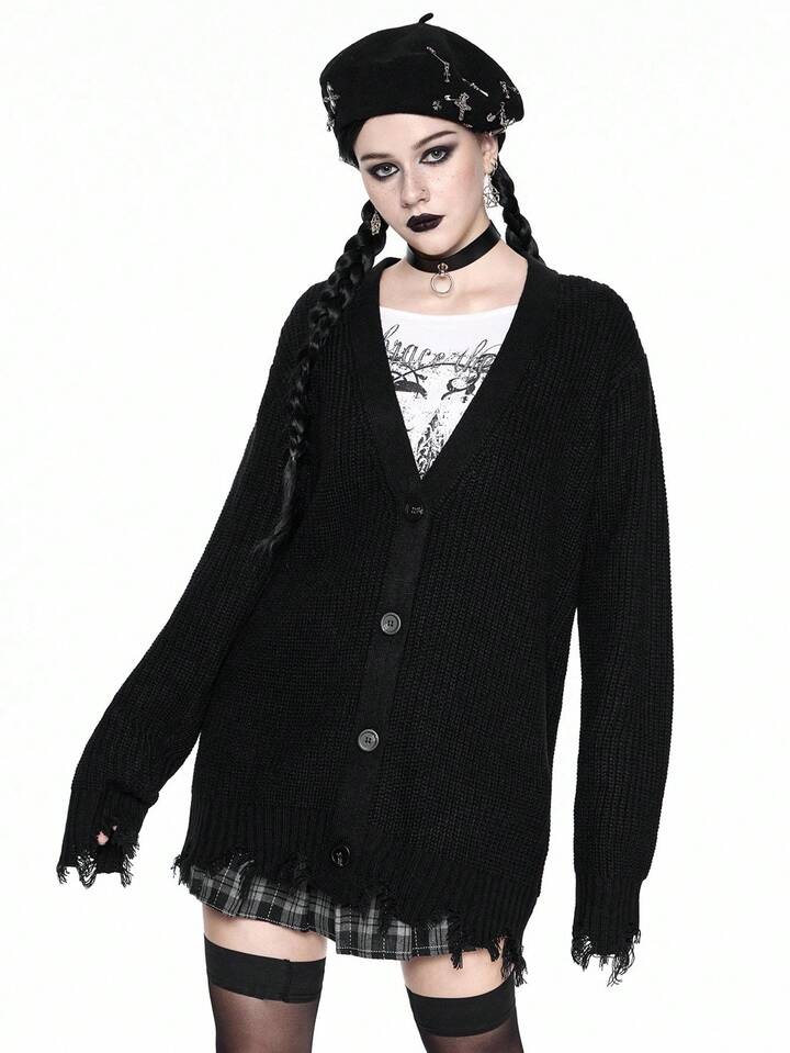 Goth Cardigan en tricot décontracté à col en V et ourlet déchiré pour femmes, ample, veste de dessus, automne/hiver, Halloween