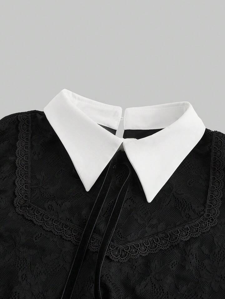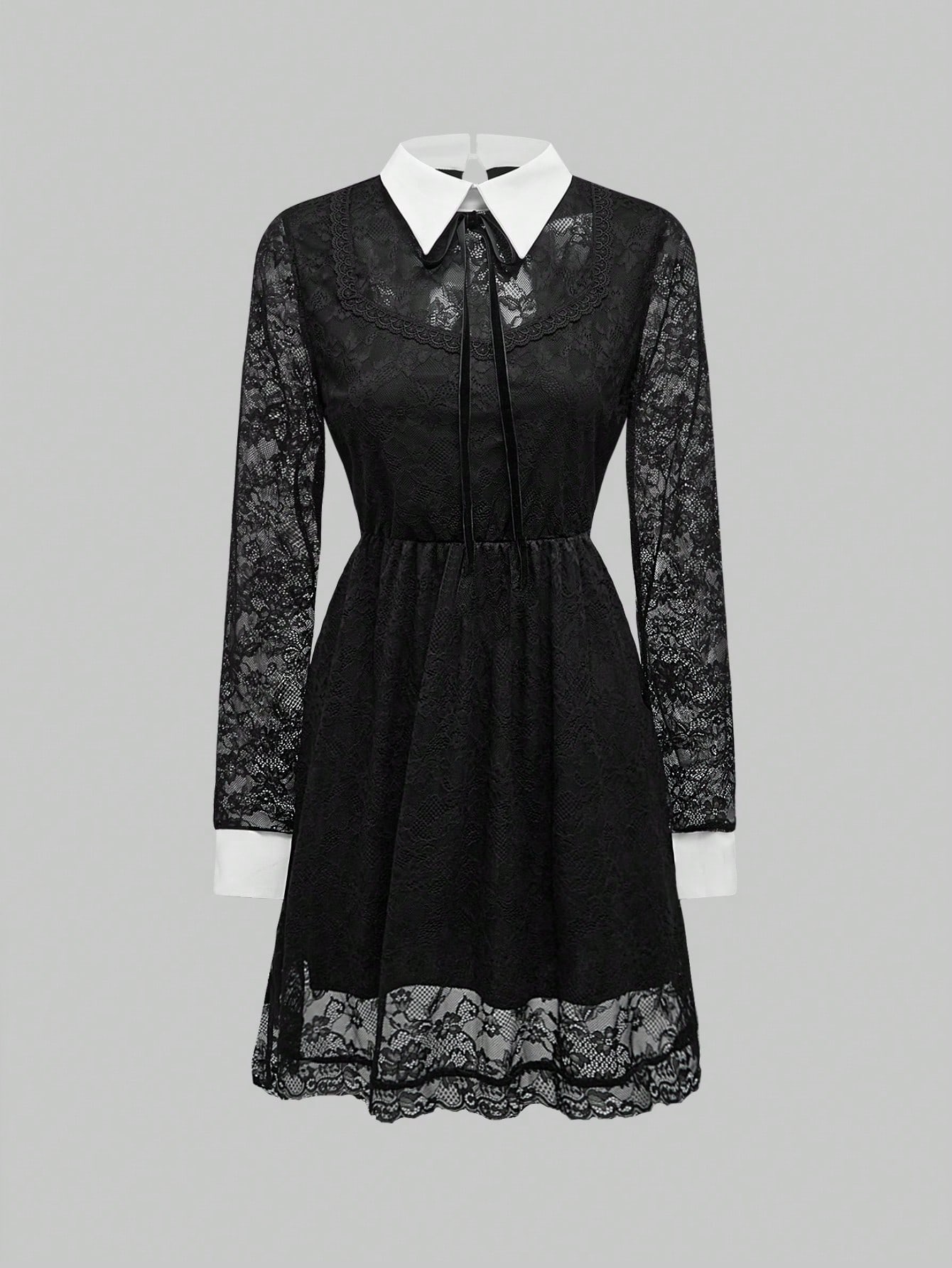 Robe courte gothique pour femme avec contraste de dentelle à la taille et à l'ourlet pour soirée