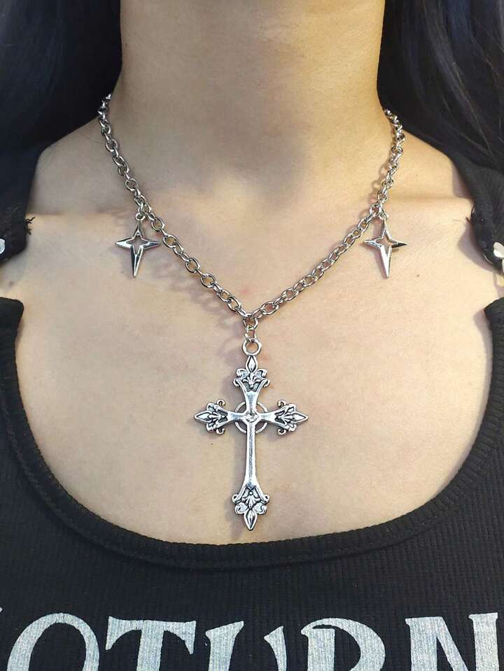 Collier Avec Pendentif Gothique Créatif Design Croix Breloque