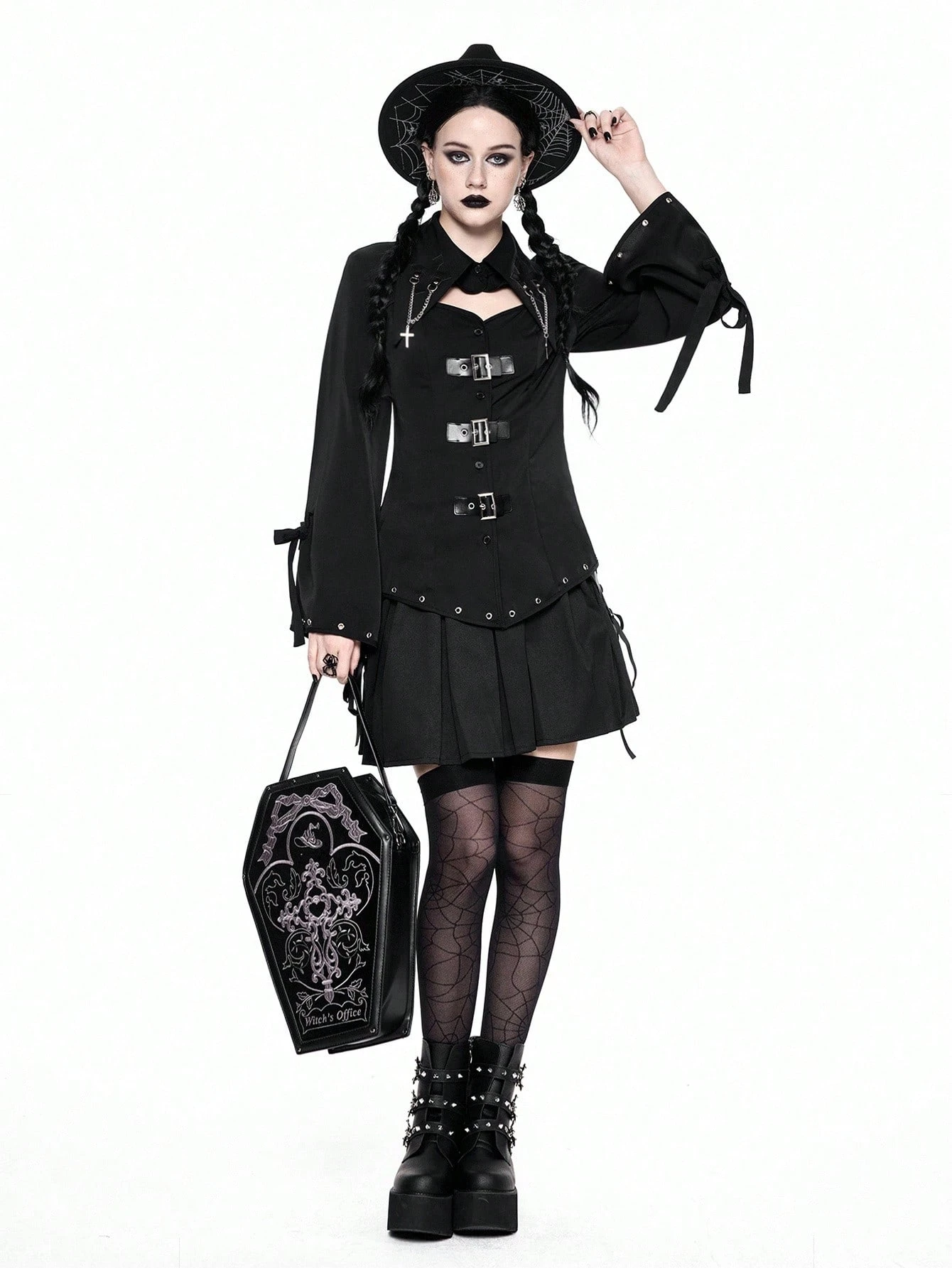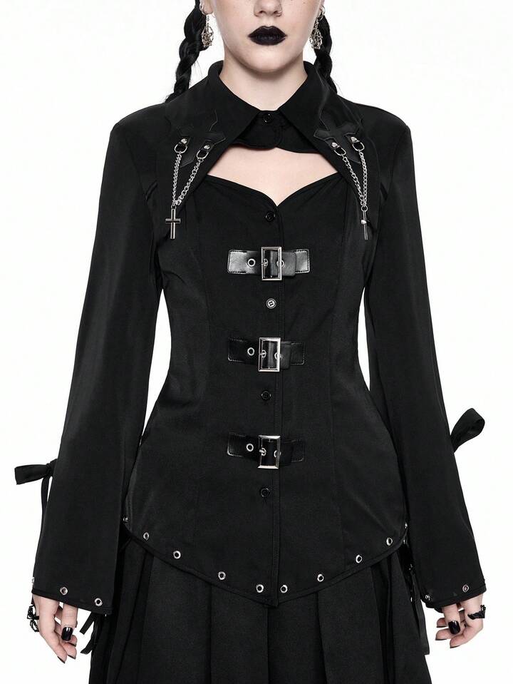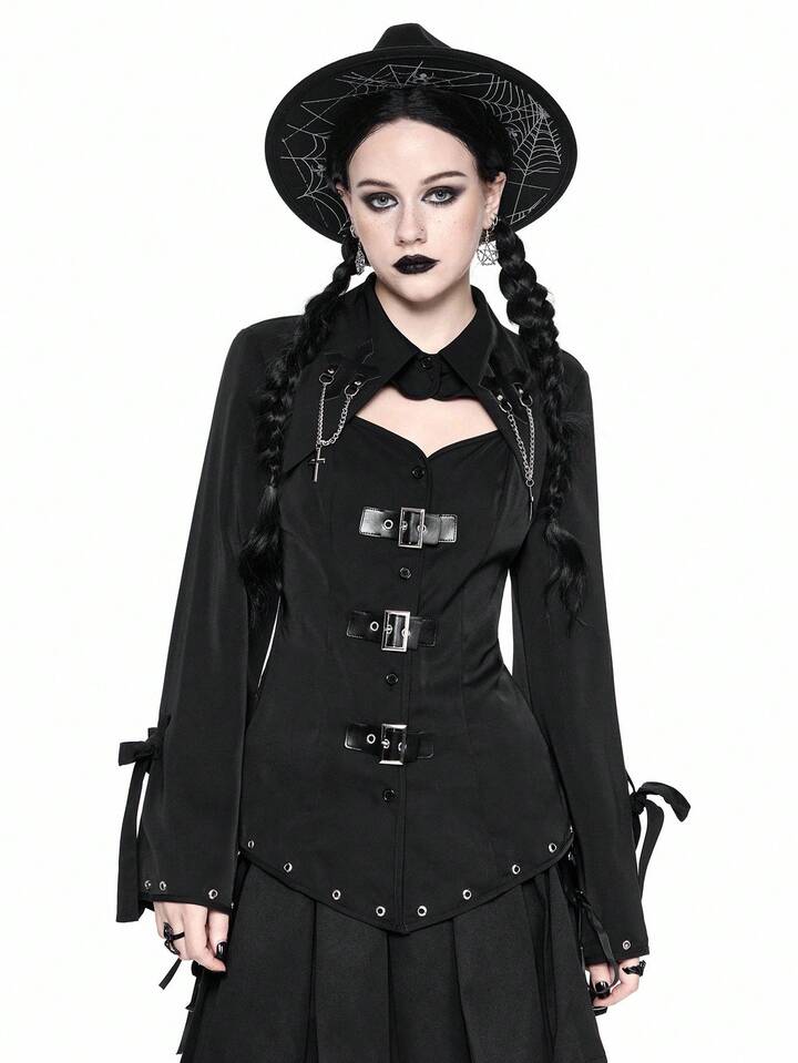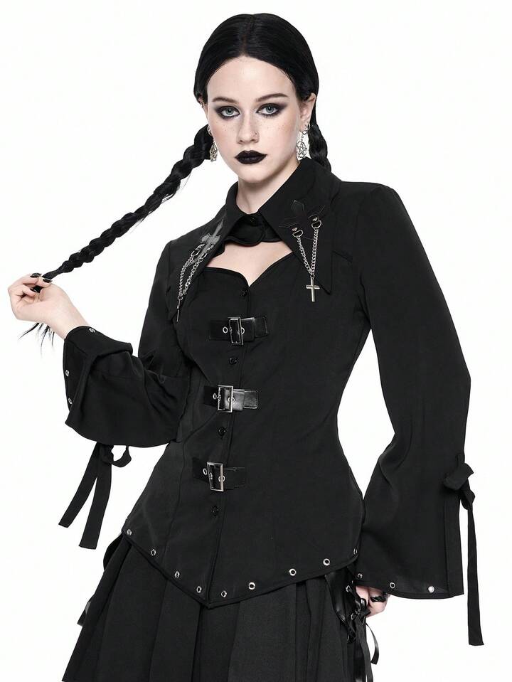 Chemise slim fit pour femme avec pendentif croix gothique pour Halloween