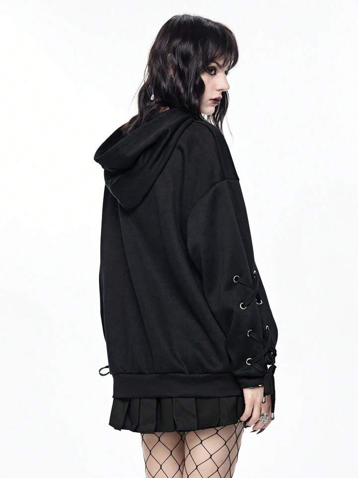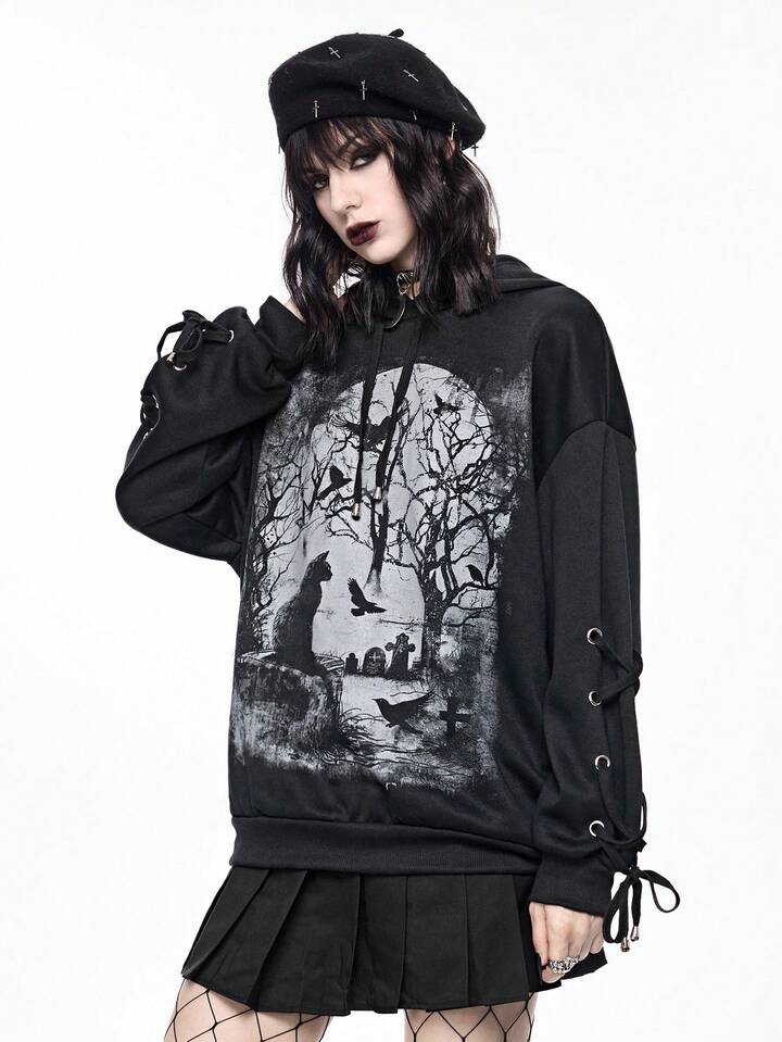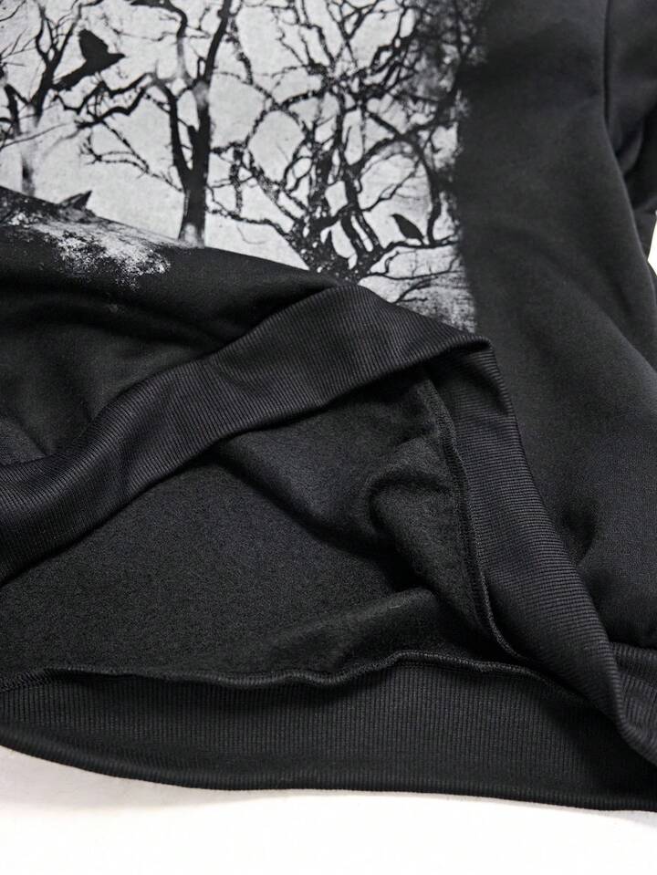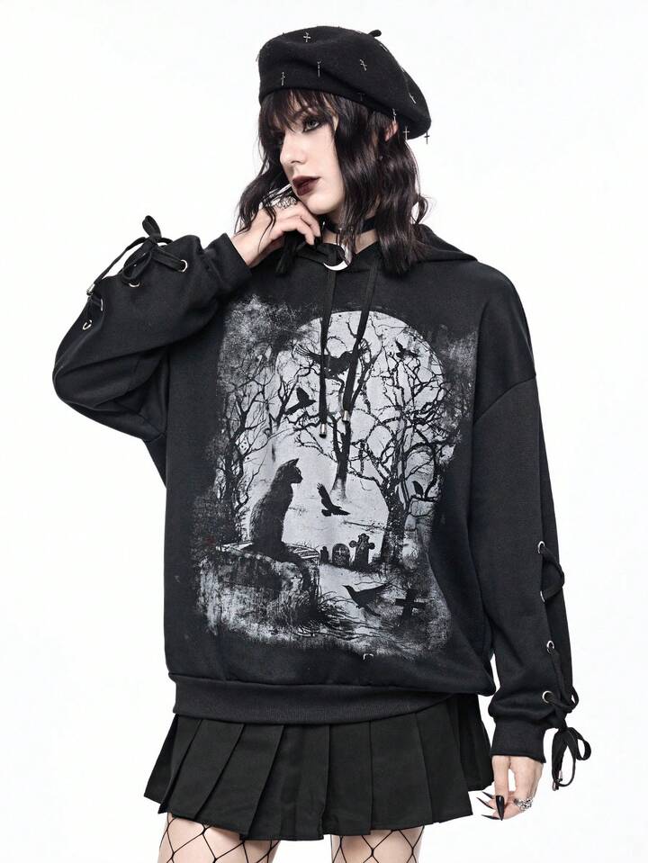 sweat-shirt à capuche ample gothique, corbeau noir, chat noir, forêt pour femmes, doublé thermique