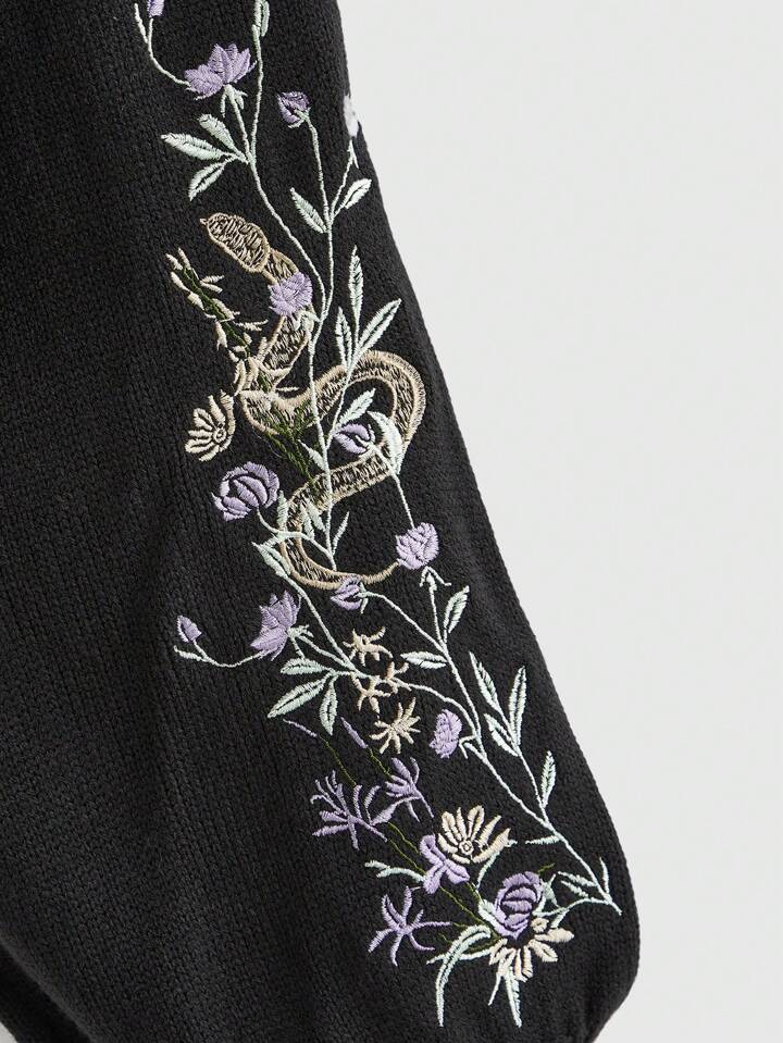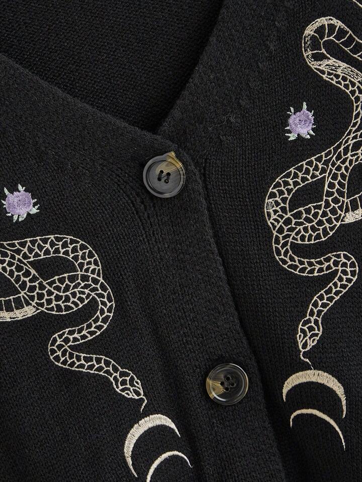 Cardigan tricoté ample à motif de plante serpent mystérieux sombre gothique