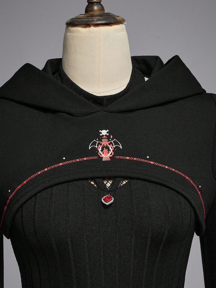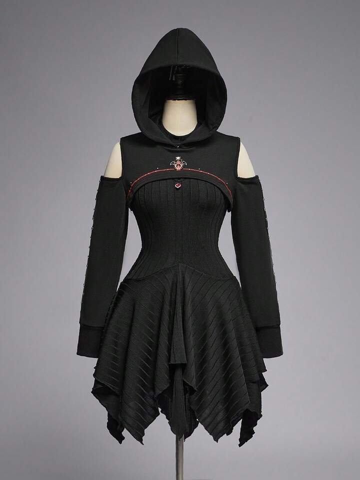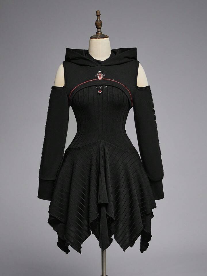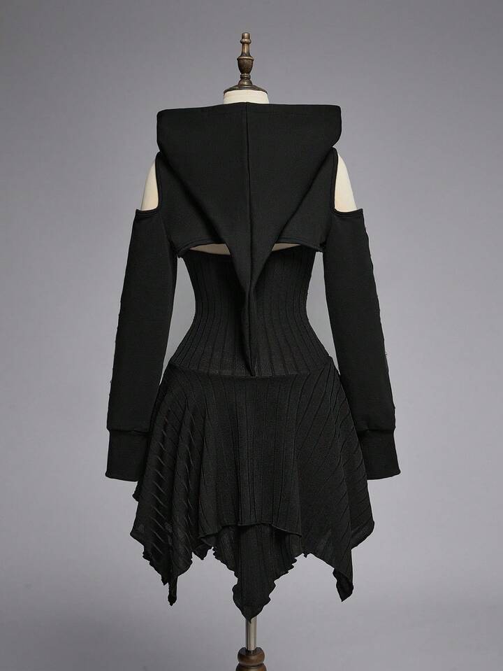 Ensemble de costume de sorcière gothique sombre - chapeau de sorcière noir, Sweat-shirt à capuche et robe épaules dénudées