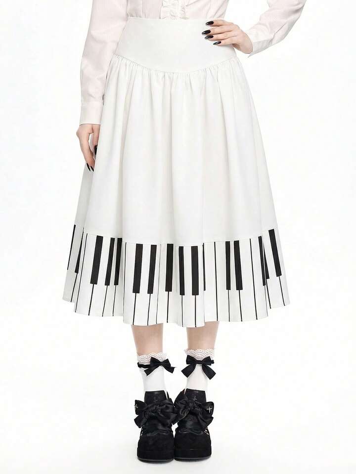 Jupe trapèze à motif de touches de piano gothique pour femmes