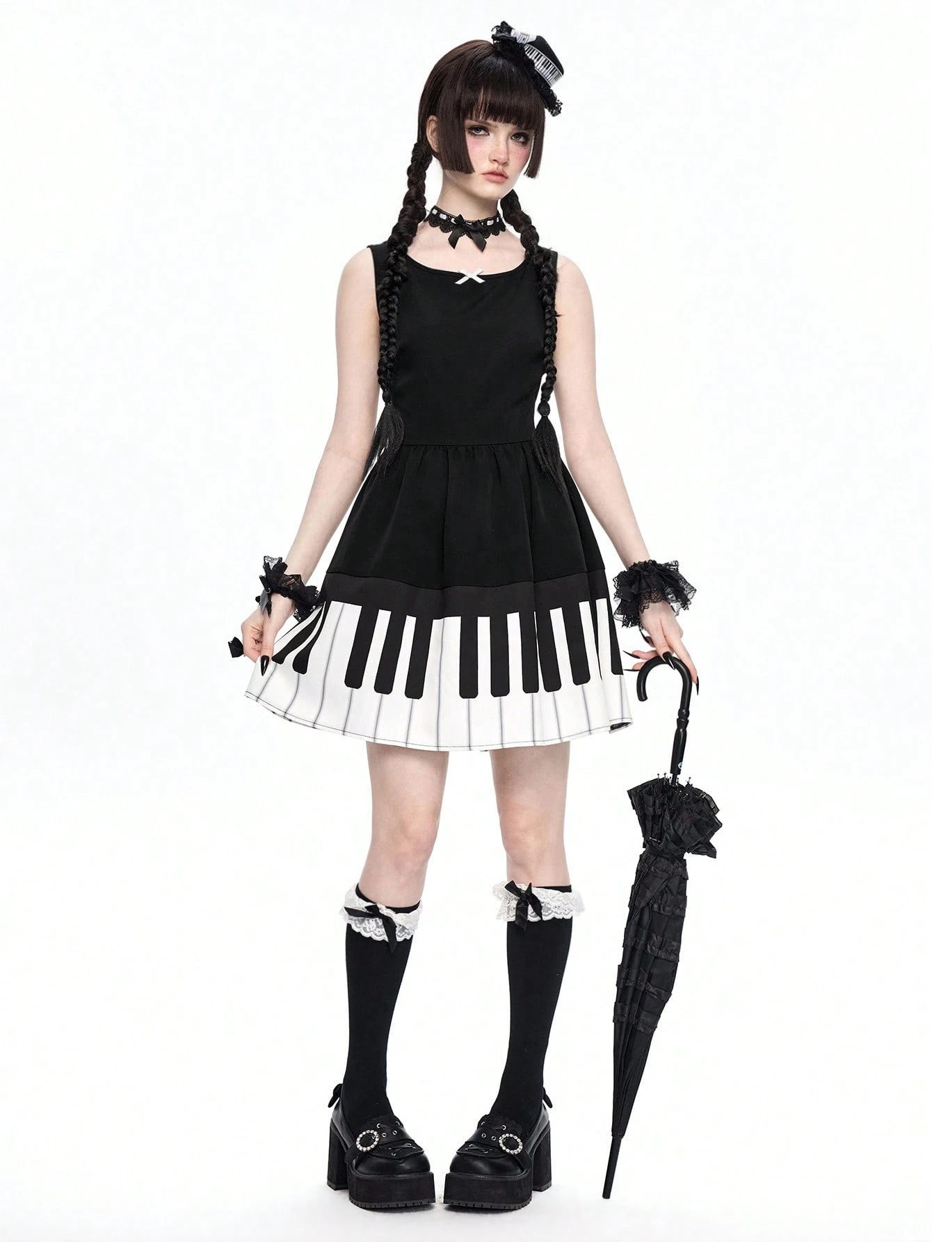 Robe mini femme à volants et imprimé piano gothique