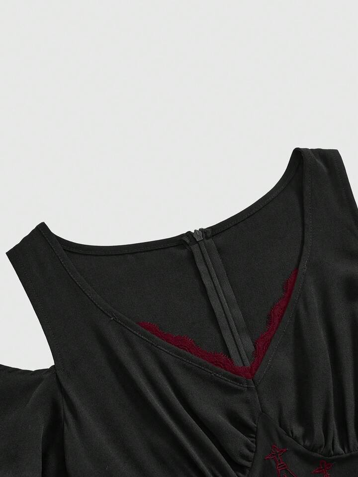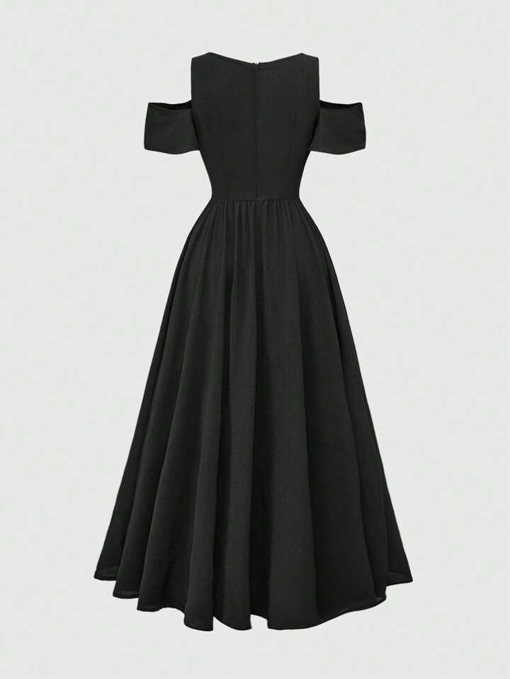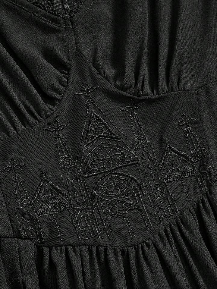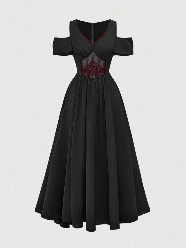 Robe d'été pour dames à col en V profond, épaules dénudées, fente haute, motif ajouré à broderie gothique. Robe de soirée