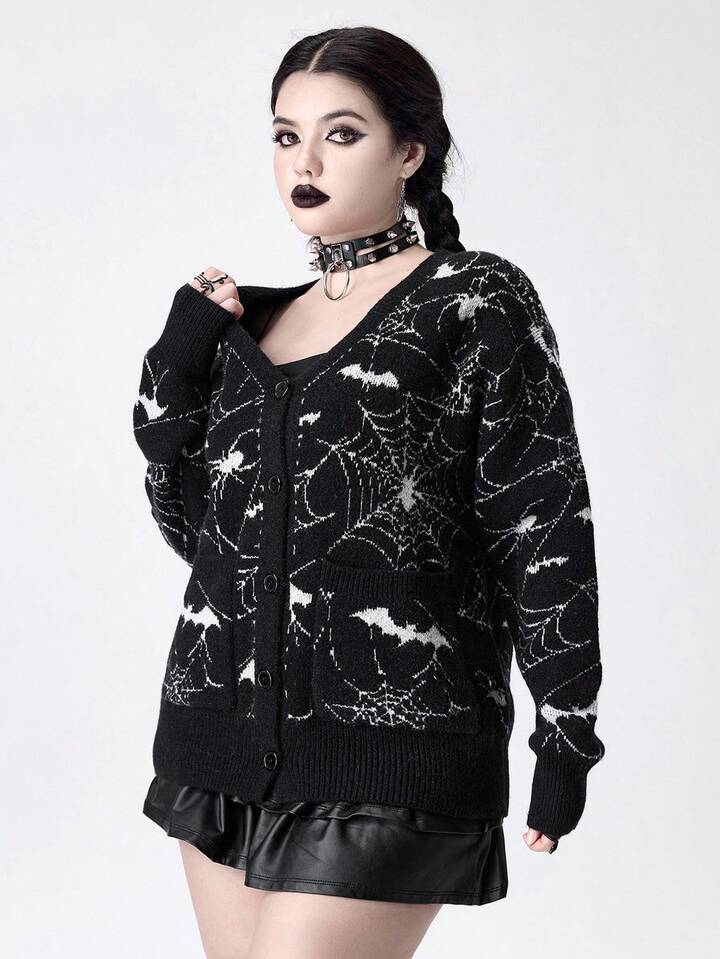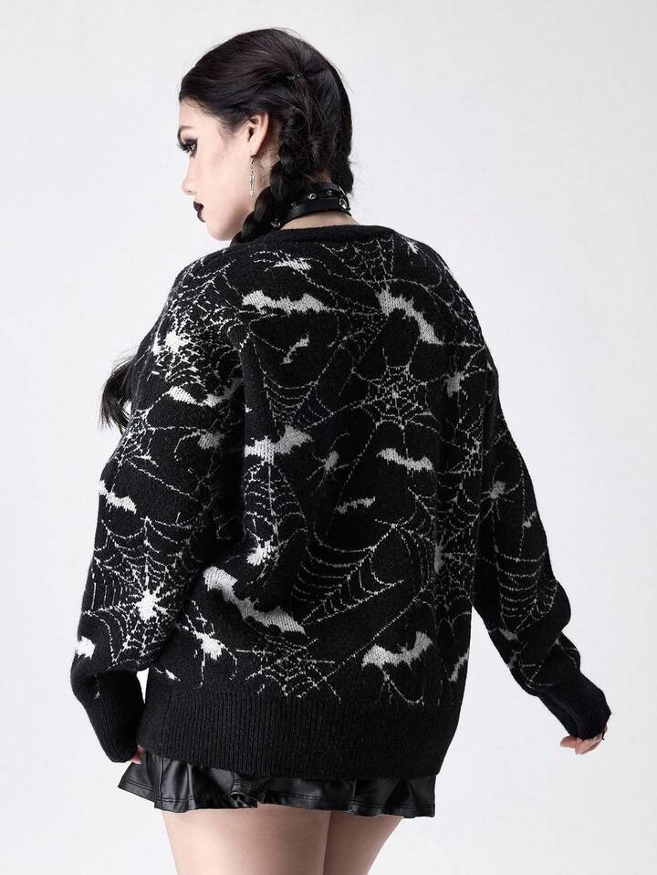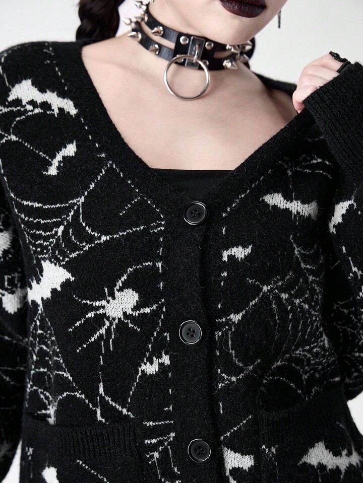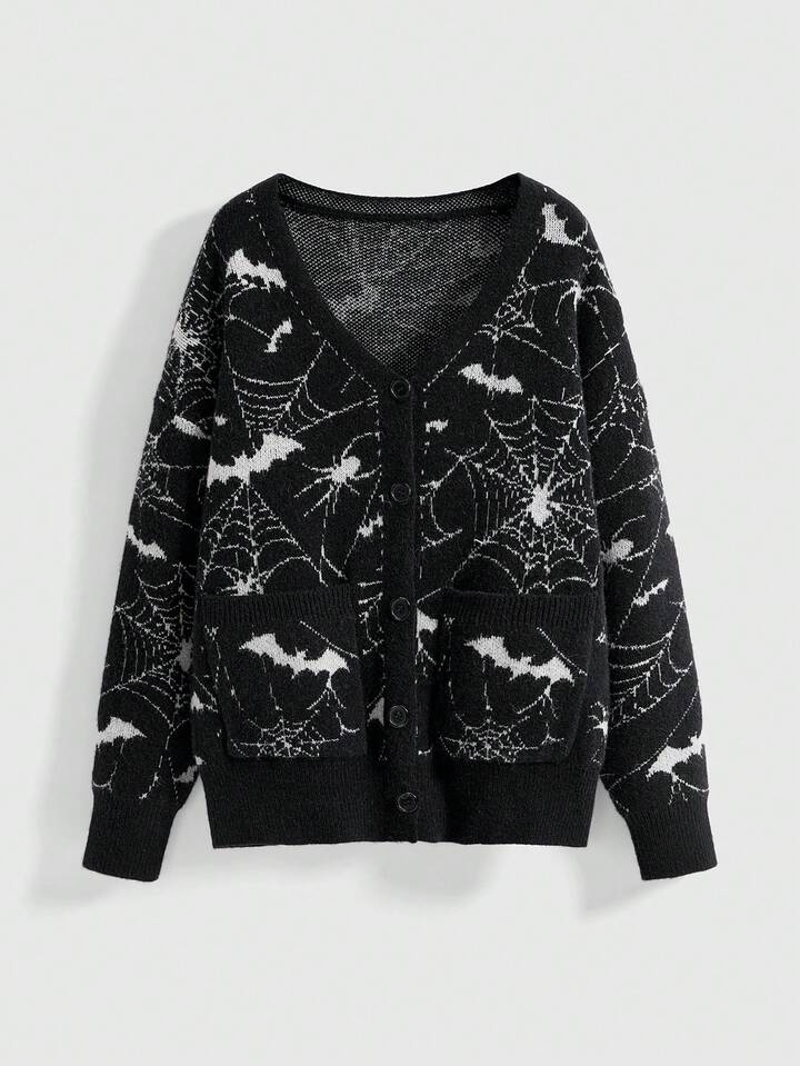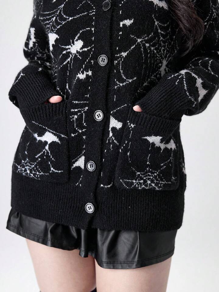 Cardigan en jacquard tricoté à motif de toile d'araignée gothique pour femmes