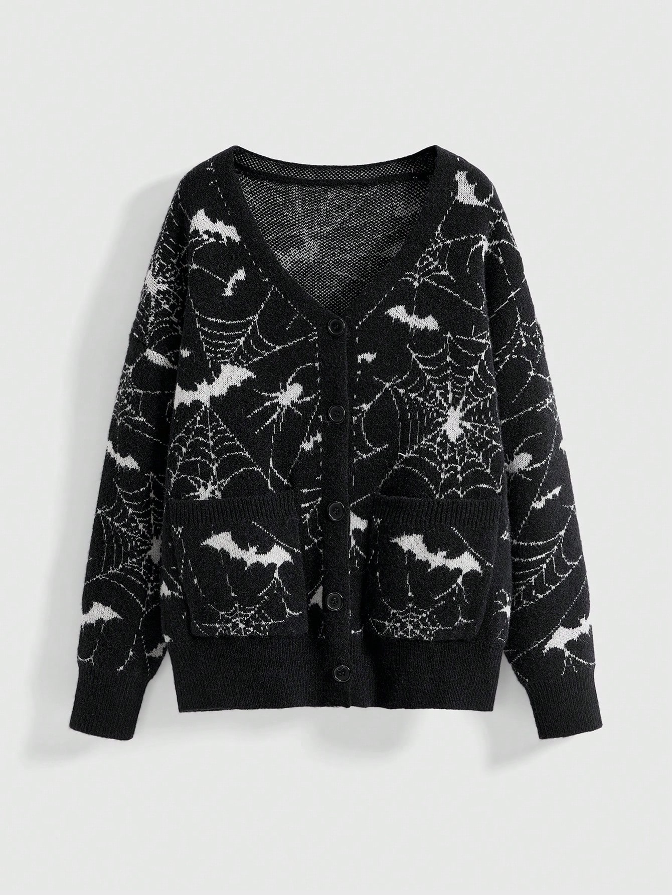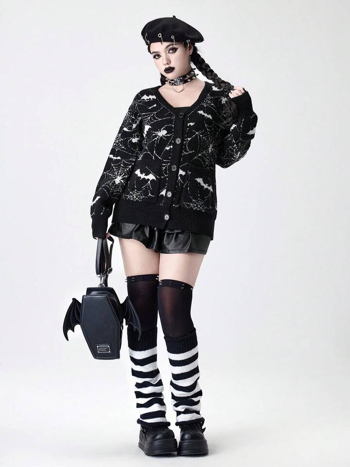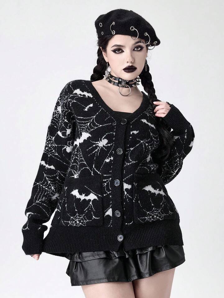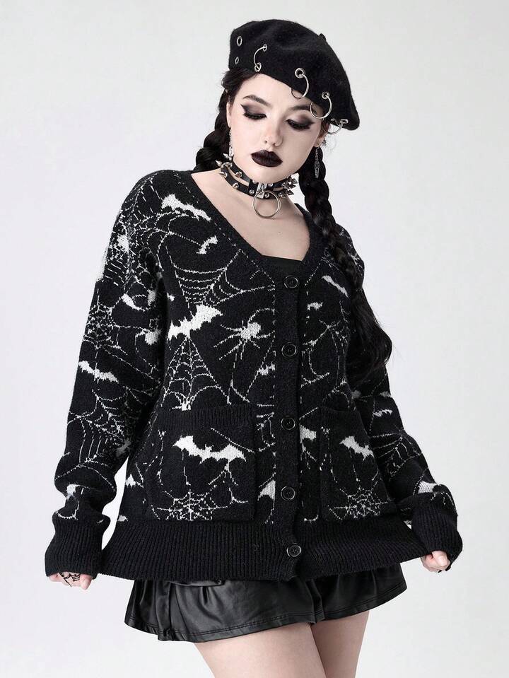 Cardigan en jacquard tricoté à motif de toile d'araignée gothique pour femmes