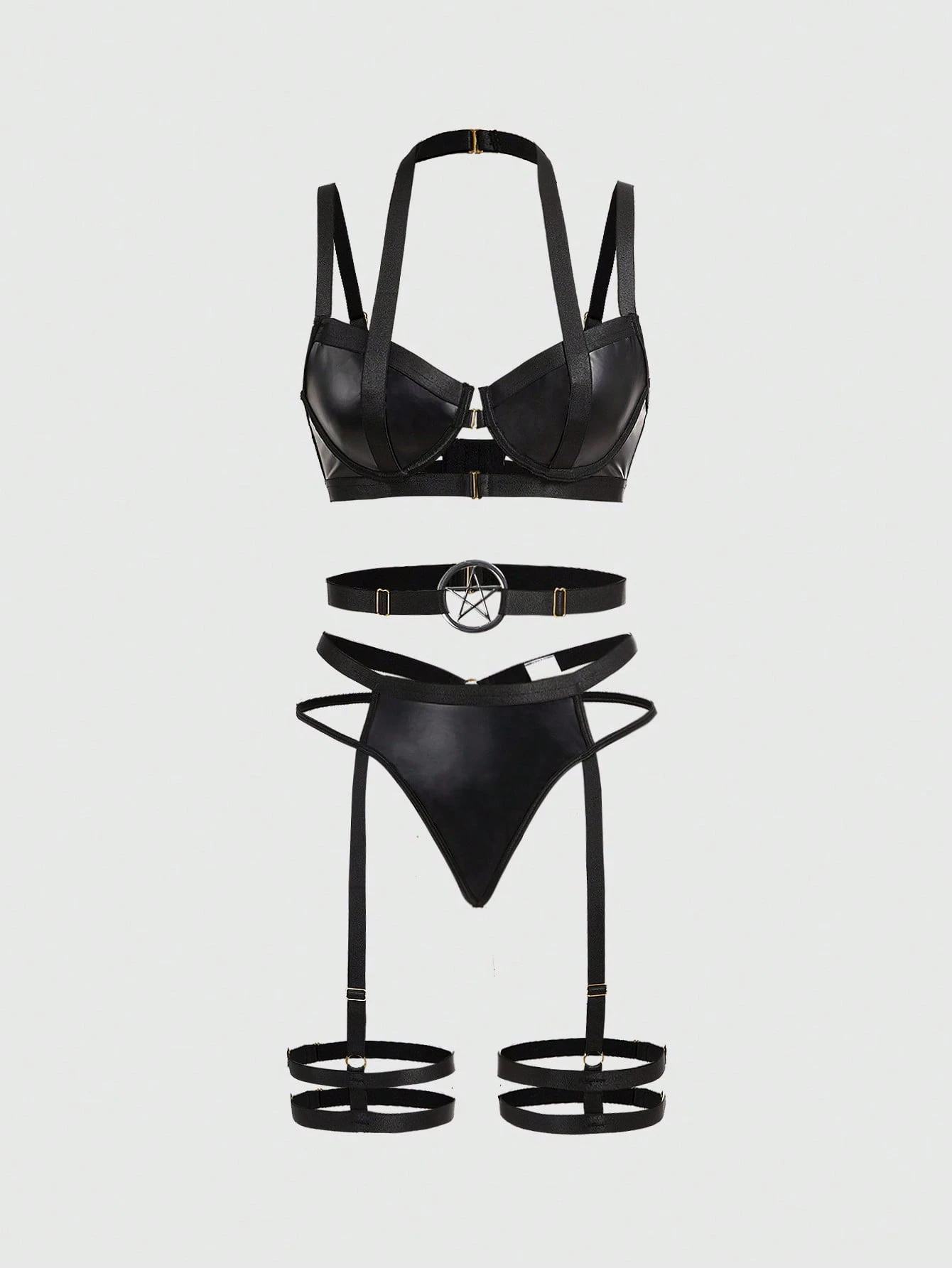 Ensemble de lingerie sexy gothique punk avec soutien-gorge à armatures, string et porte-jarretelles