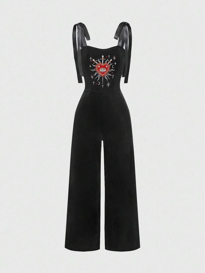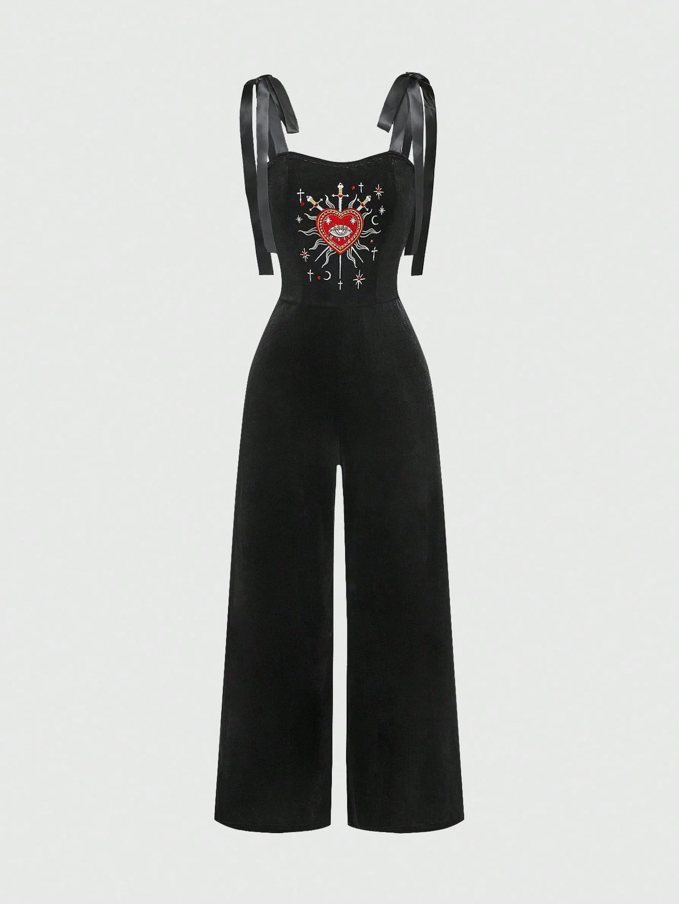 Body gothique romantique style Mori en dentelle avec strass, cristal en forme de larme et broderie d'étoile, col ras-du-cou, laçage pour femmes