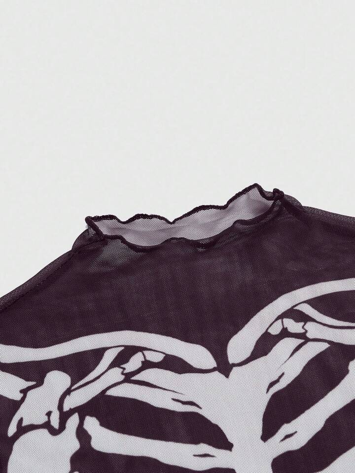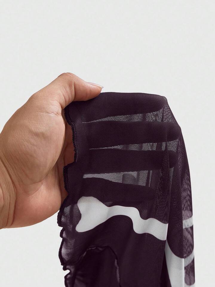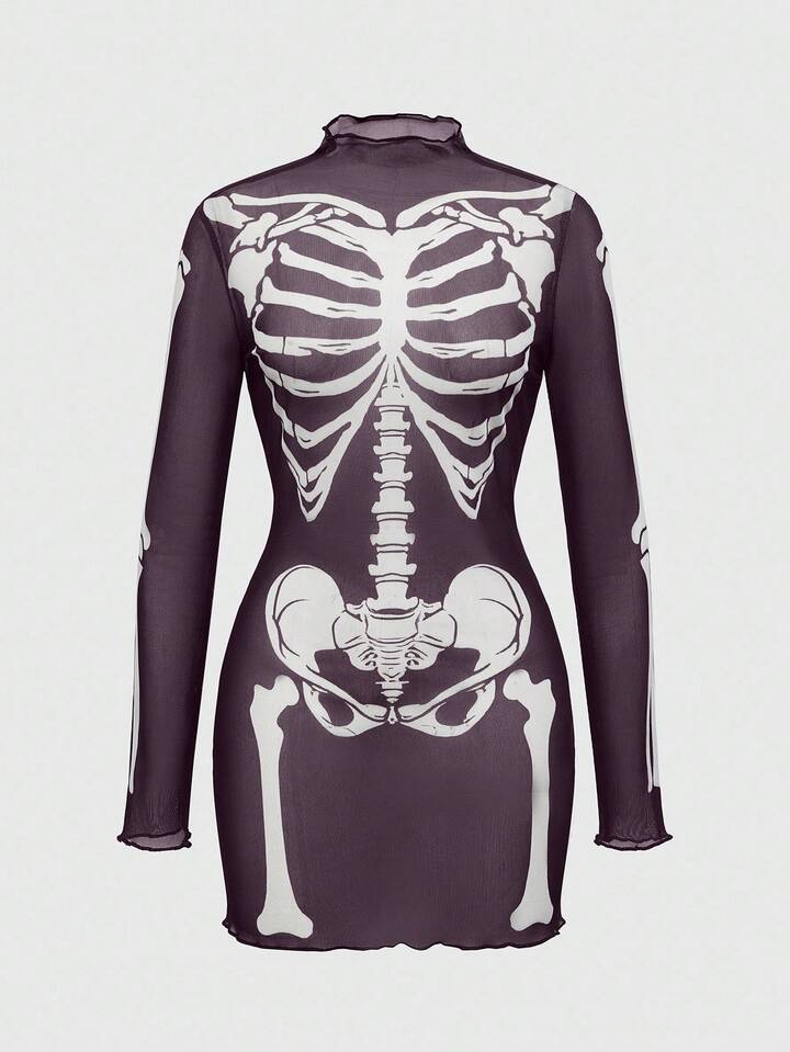 Robe mini gothique transparente sexy avec squelette floqué pour femmes