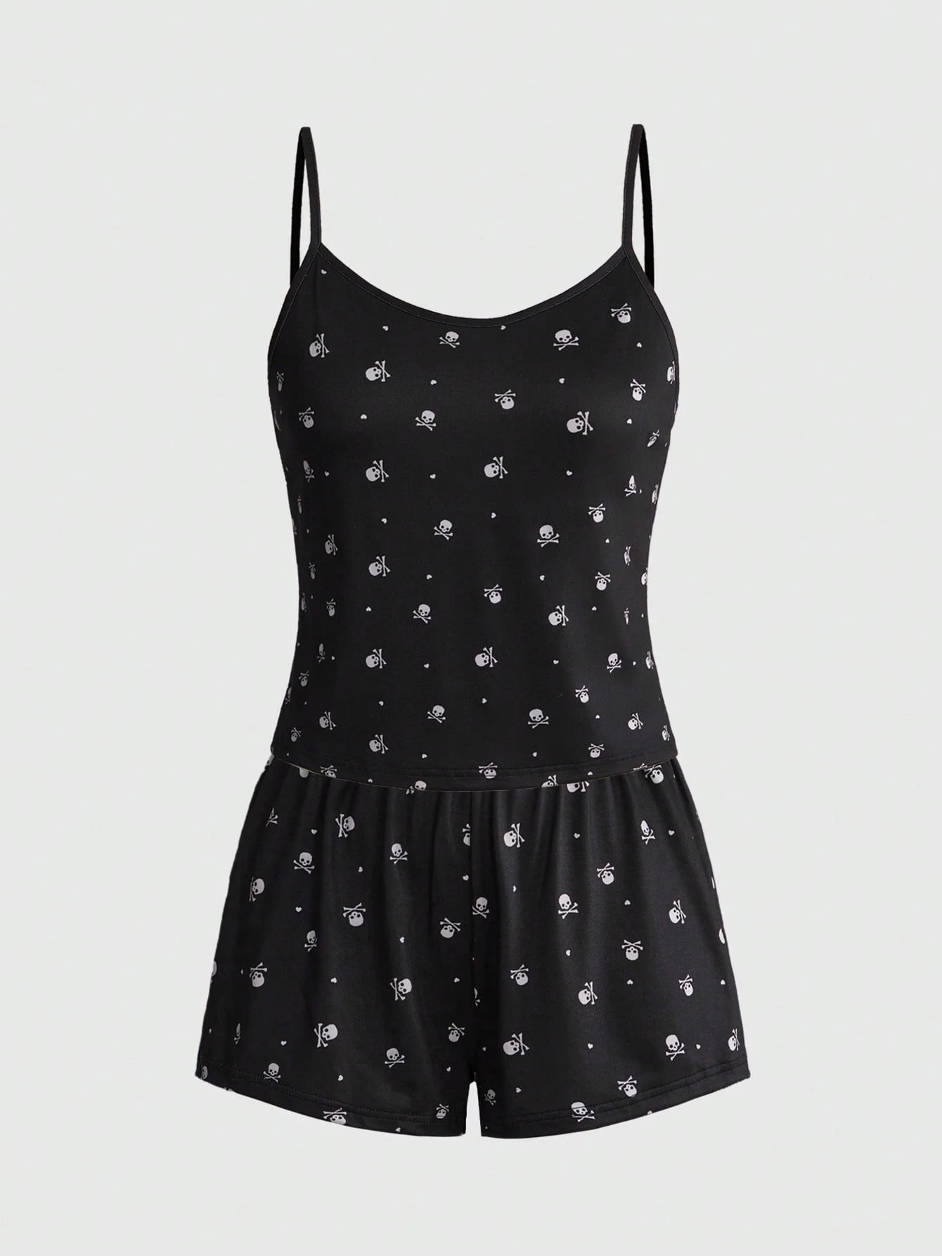 Ensemble pyjama camisole et short imprimé crâne gothique et pois, vêtements de nuit décontractés