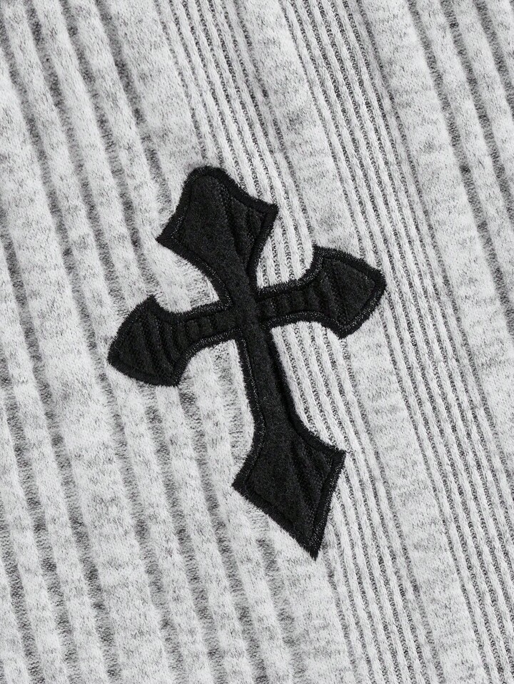 Ensemble pyjama confortable de camisole et shorts à côtes avec broderie en croix gothique pour femmes