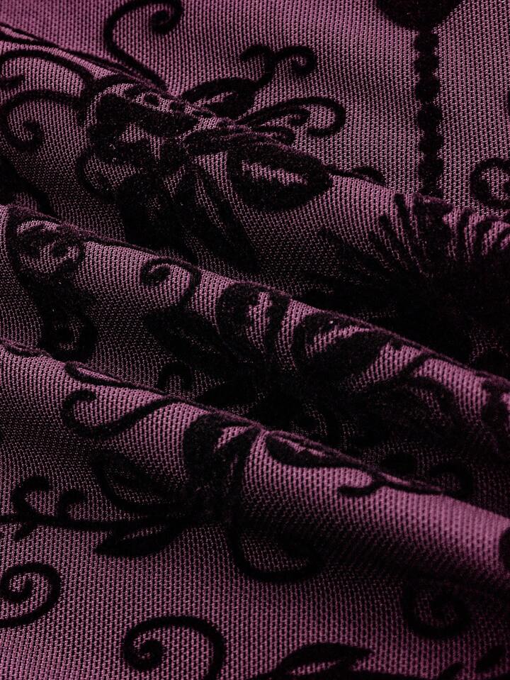 Robe mi-longue pour femmes au style gothique, avec un motif de croix floquée et de motif floral sur un contraste de maille, avec un laçage à la taille