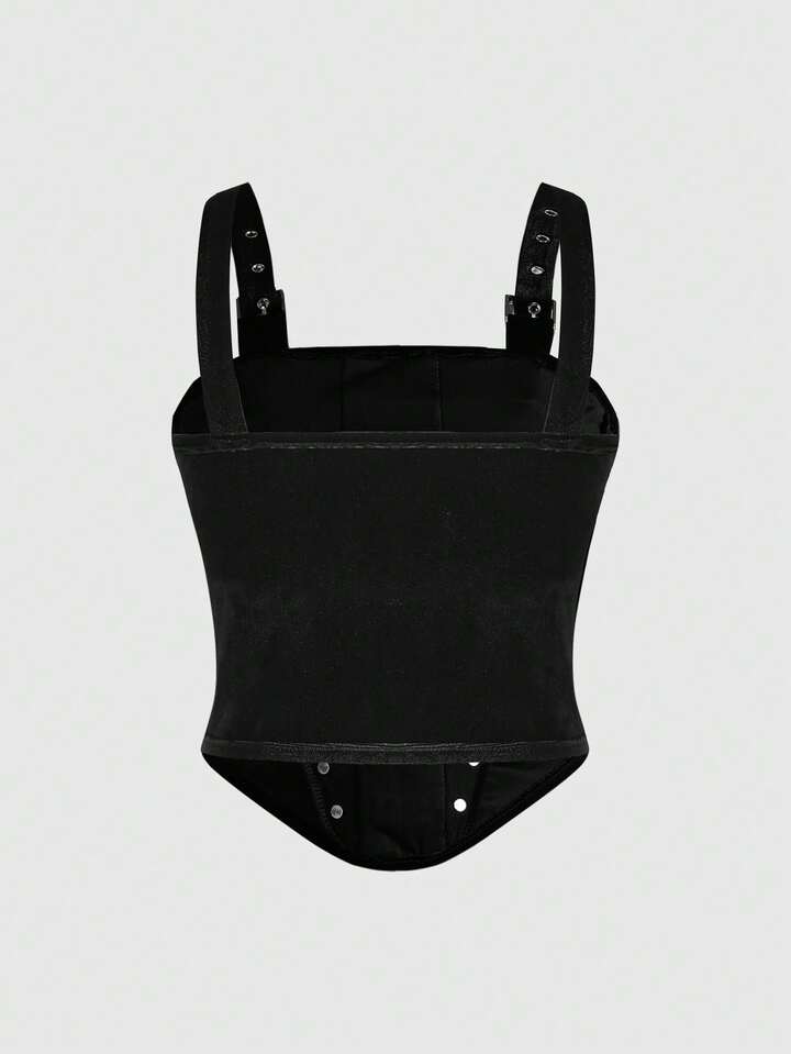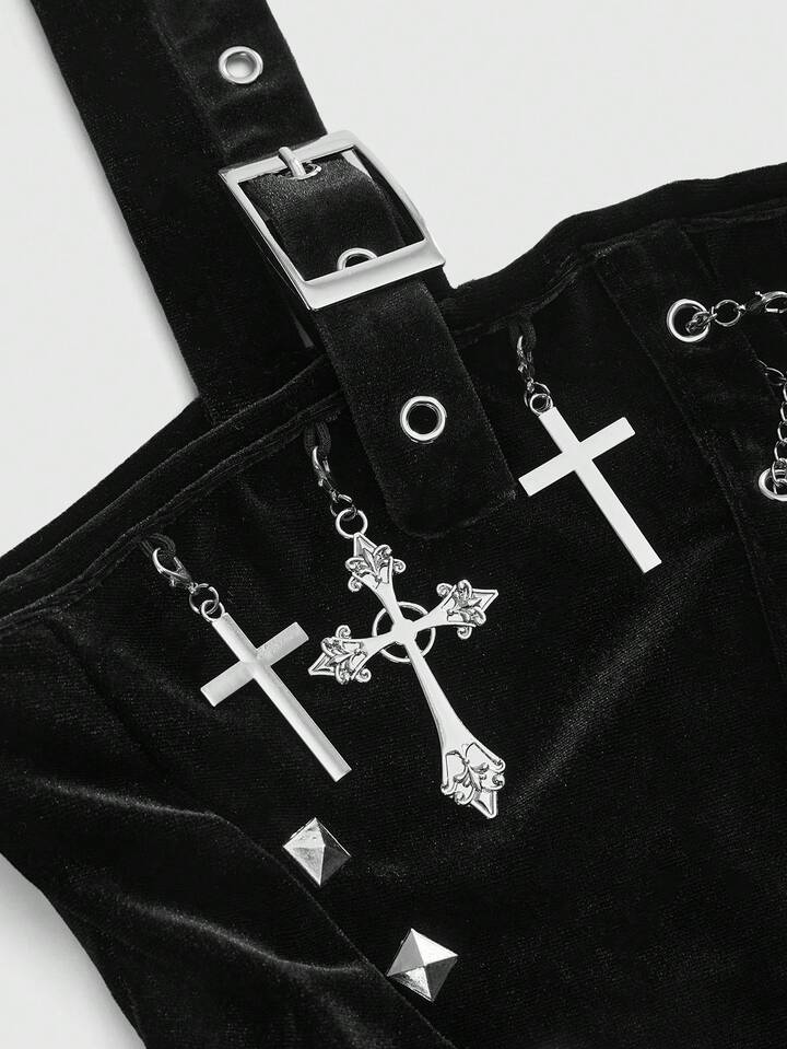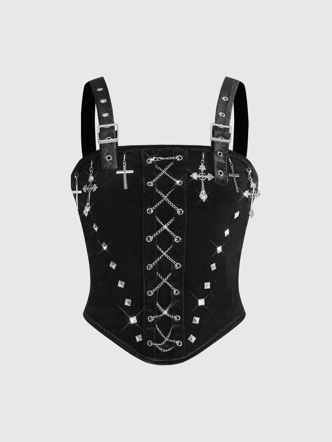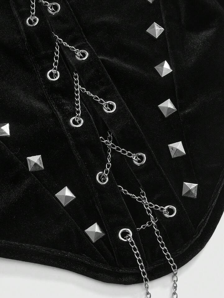 Débardeur en velours avec cadre métallique style gothique, rivets et chaîne pour femmes