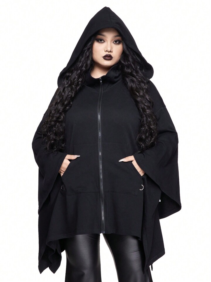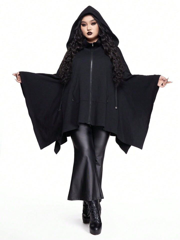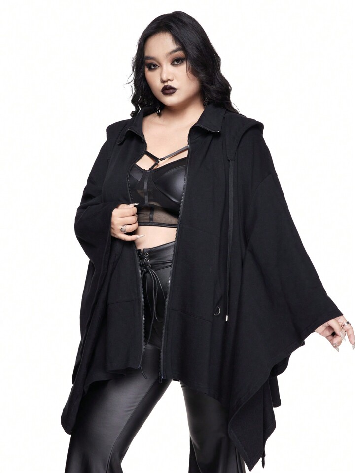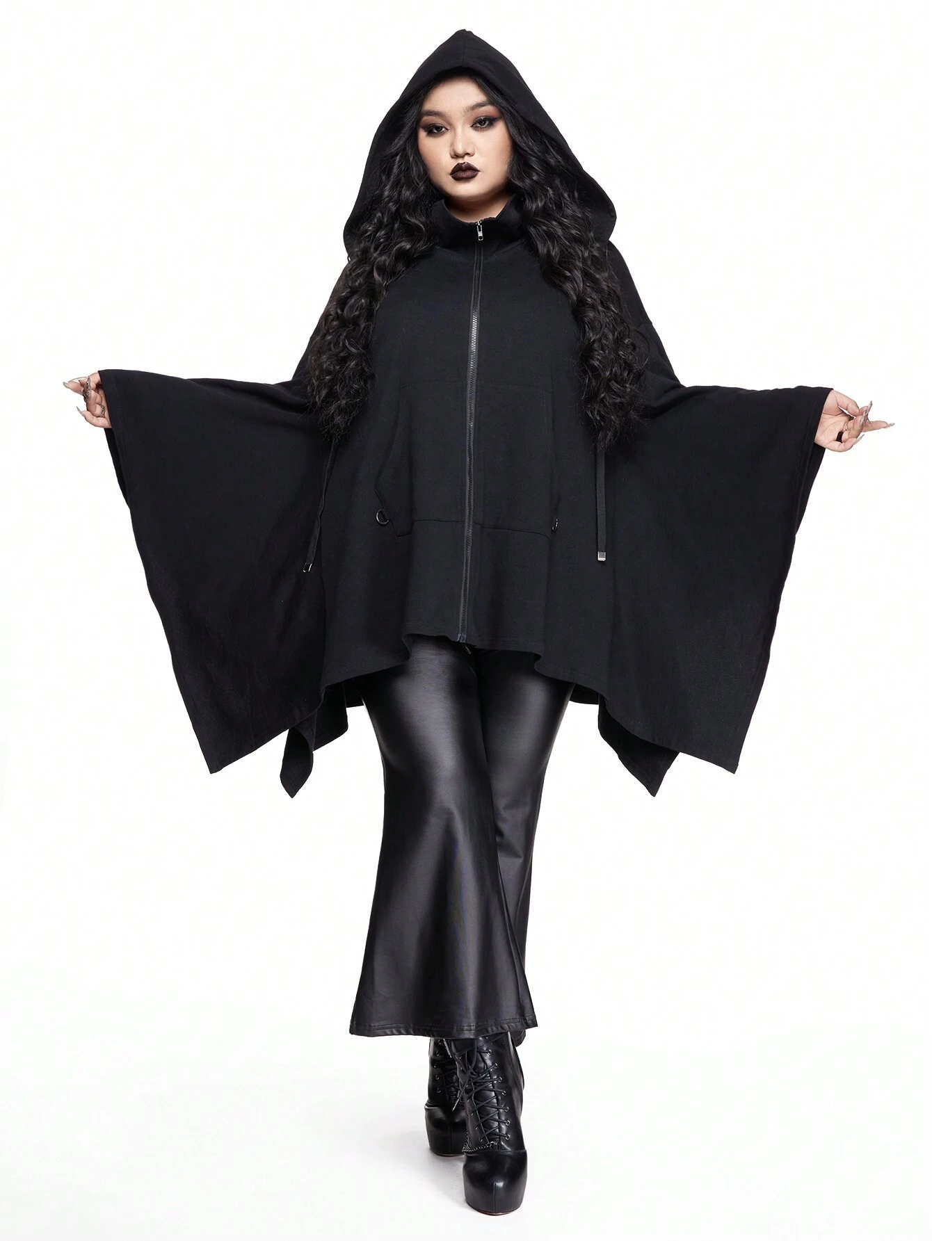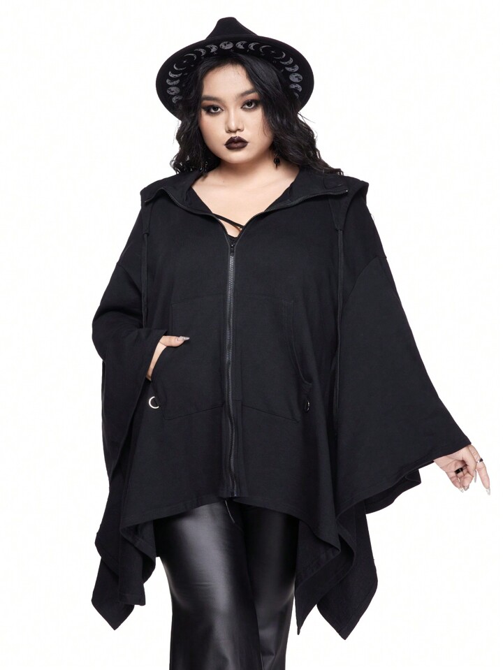 Sweat-shirt à coupe ample et asymétrique style gothique, à couleur unie, type cape de sorcière, pour femmes en grande taille