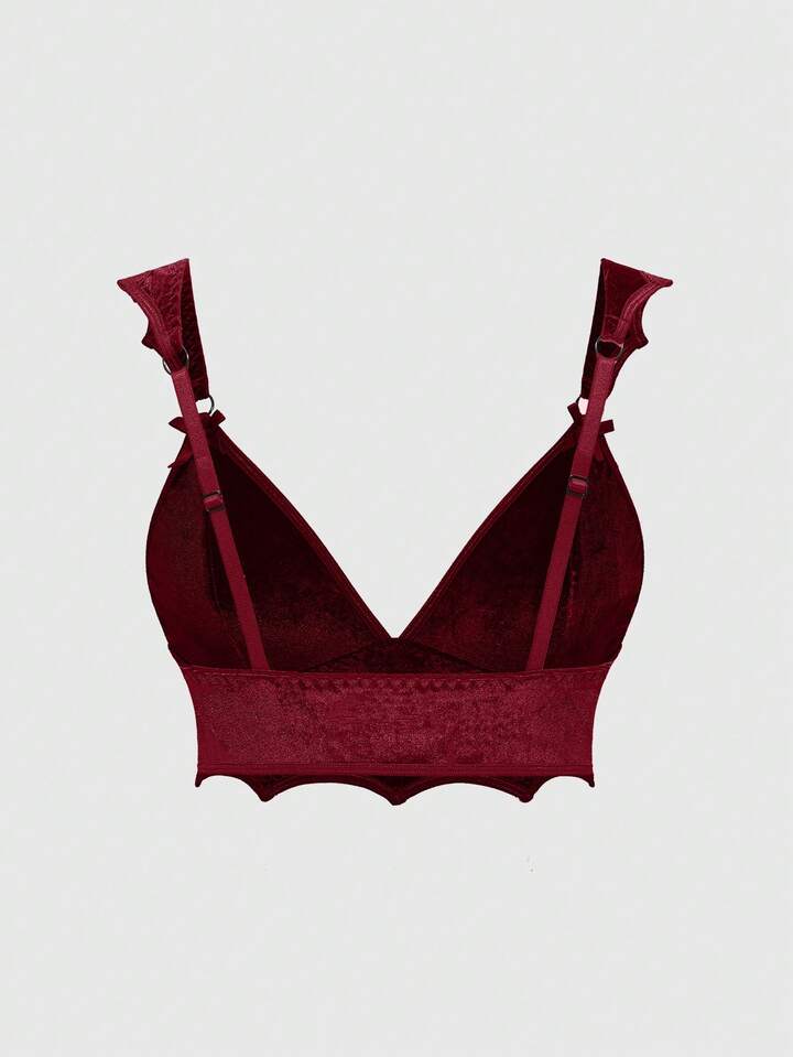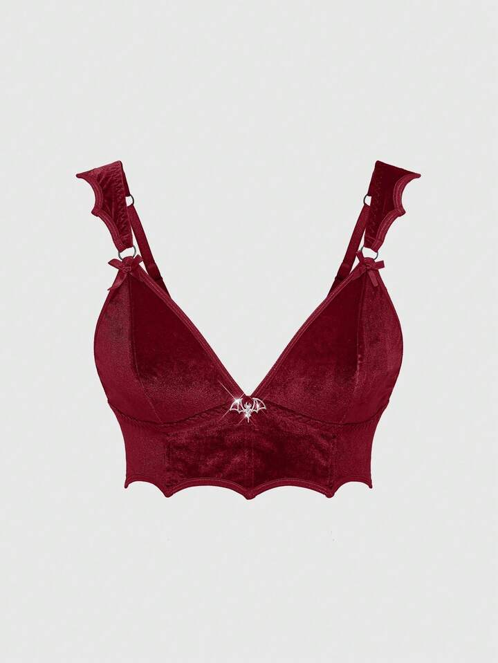 Soutien-gorge sans fil de style gothique en velours avec pendentif en métal en forme de chauve-souris et coupe triangulaire