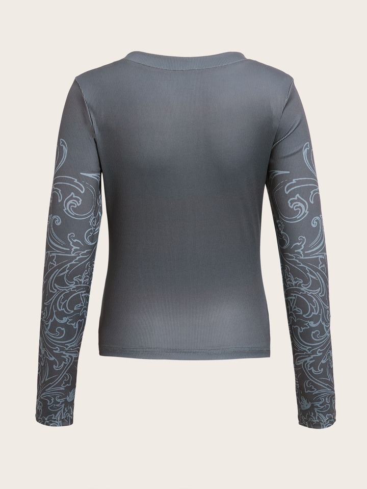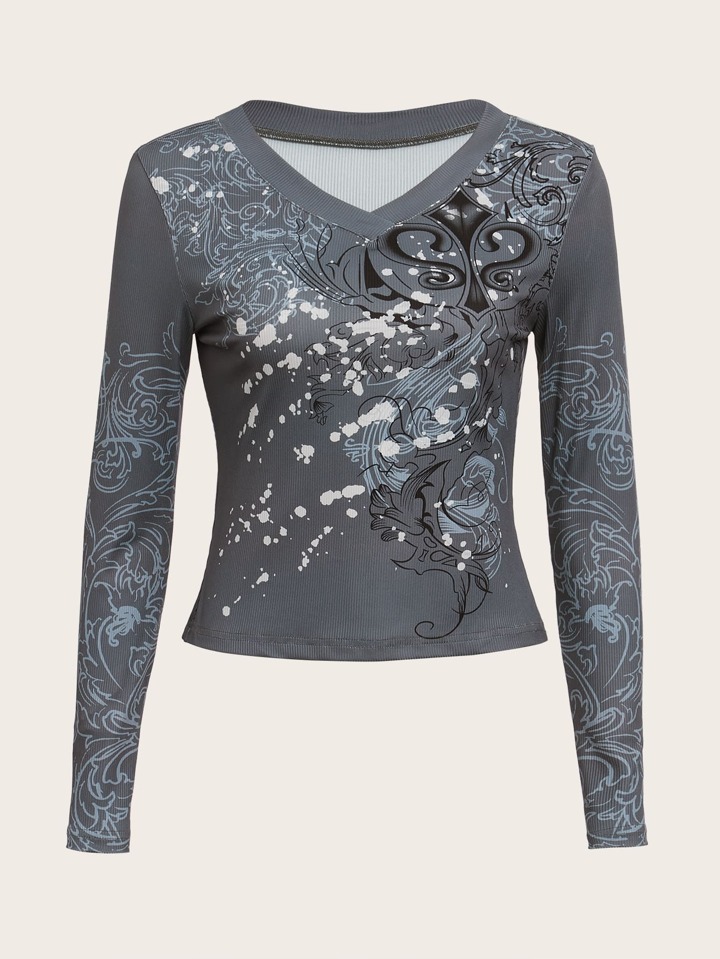 T-shirt graphique col en V côtelé