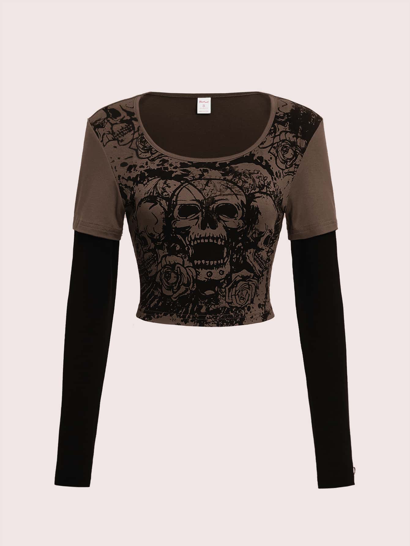 Grunge Punk T-shirt 2 en 1 à motif tête de mort