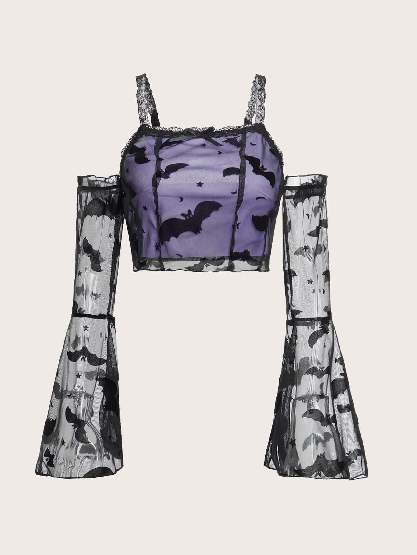Grunge Punk Top chauves-souris à imprimé à épaules dénudées
