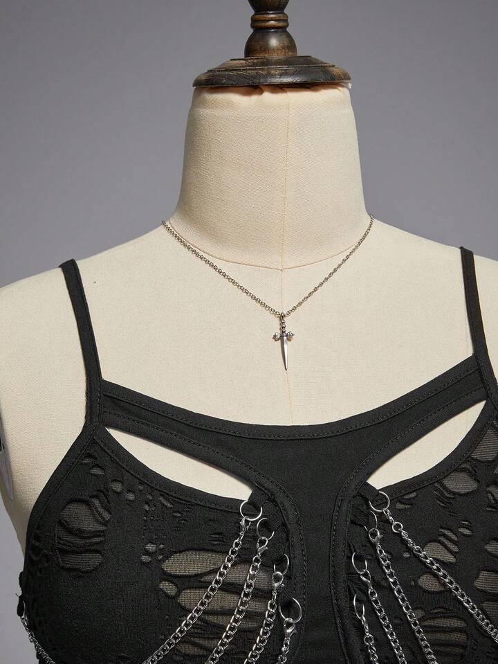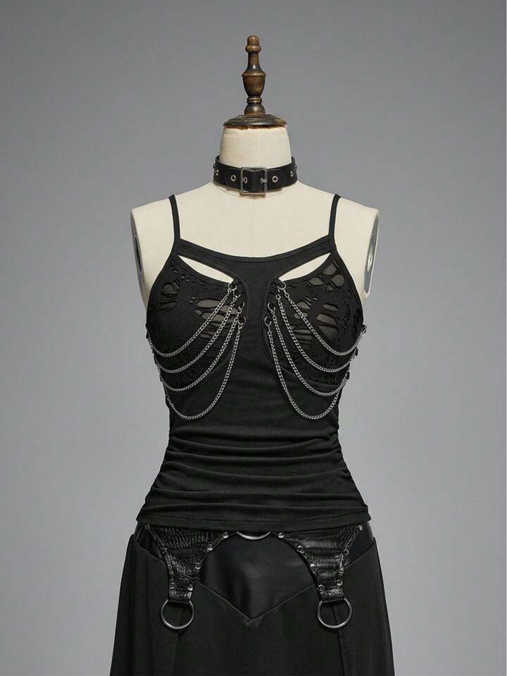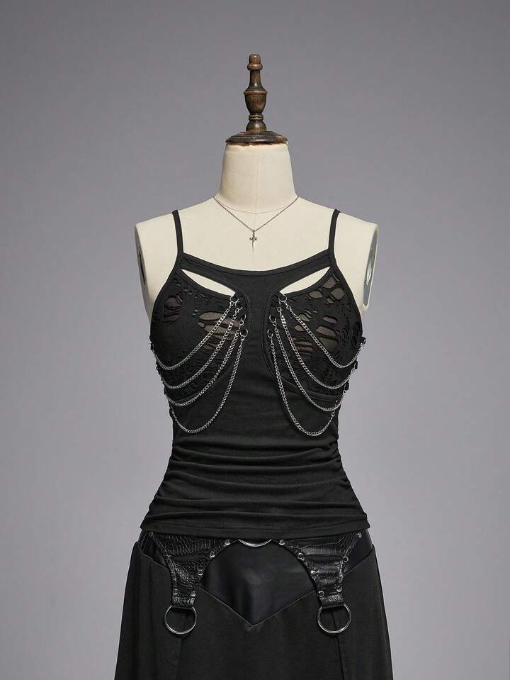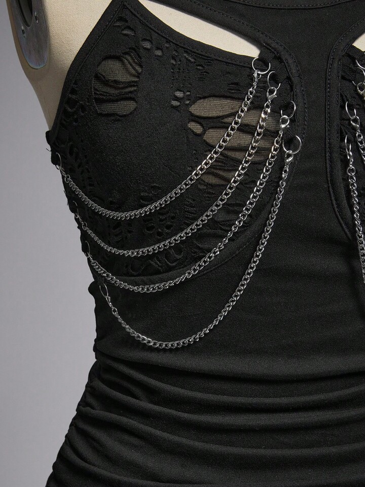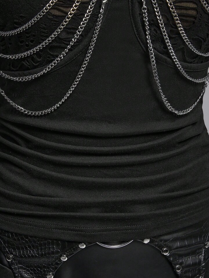 Grunge Punk Body noir à design plissé avec chaîne punk