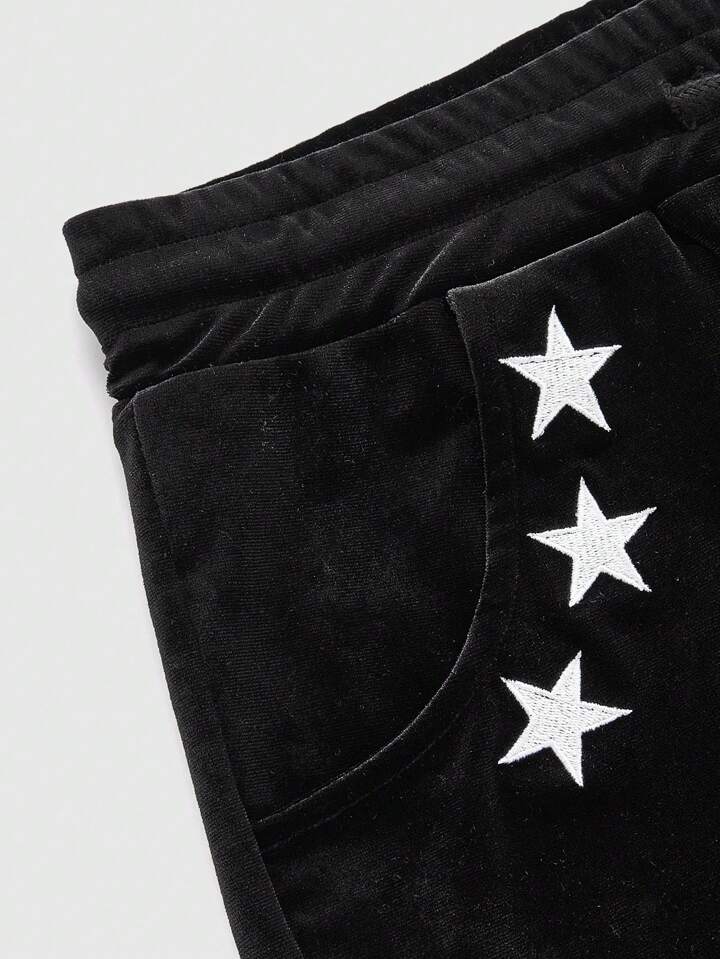 Grunge Punk Shorts En Velours Noir Avec Broderie D'étoile
