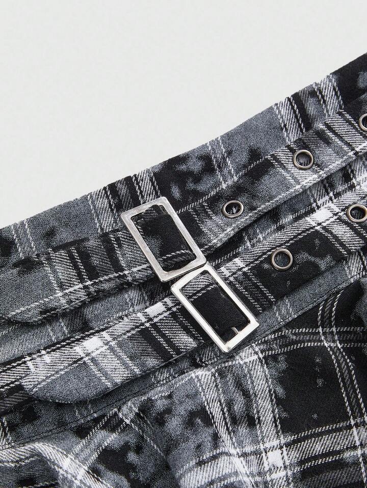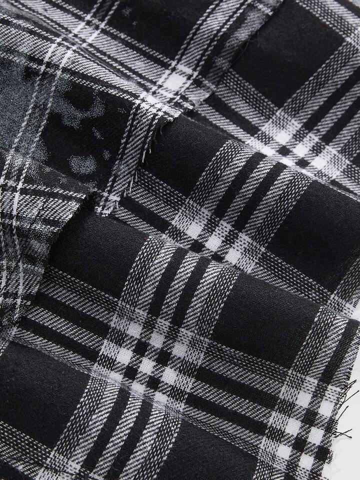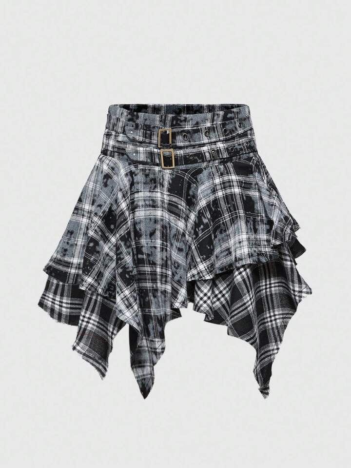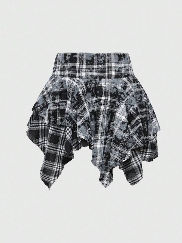 Grunge Punk Jupe femme style casual punk, patchwork déchiré avec franges, motif tie-dye à carreaux, style de rue