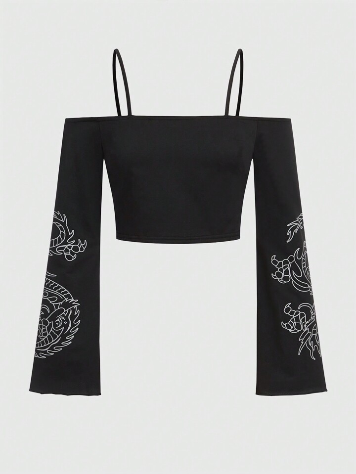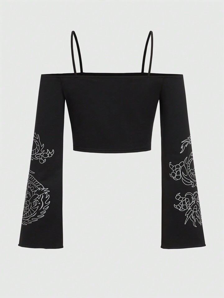 Grunge Punk T-shirt Dragon Chinois À Épaules Dénudées