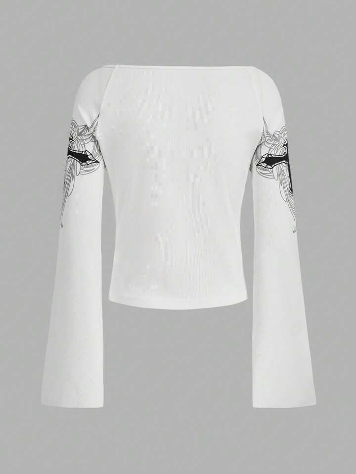 Grunge Punk T-shirt à manches évasées avec imprimé croix, école